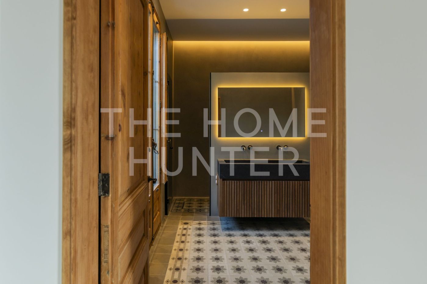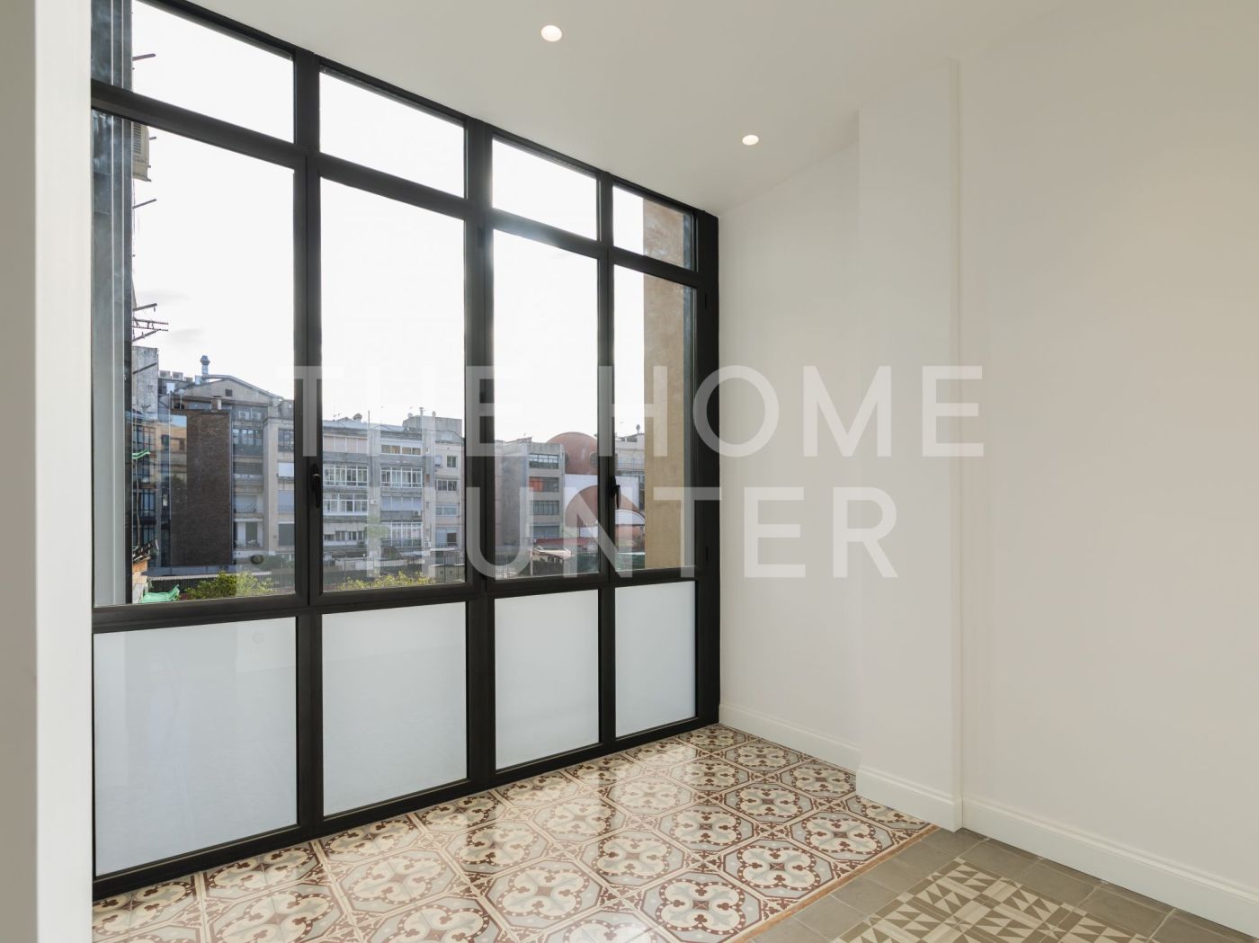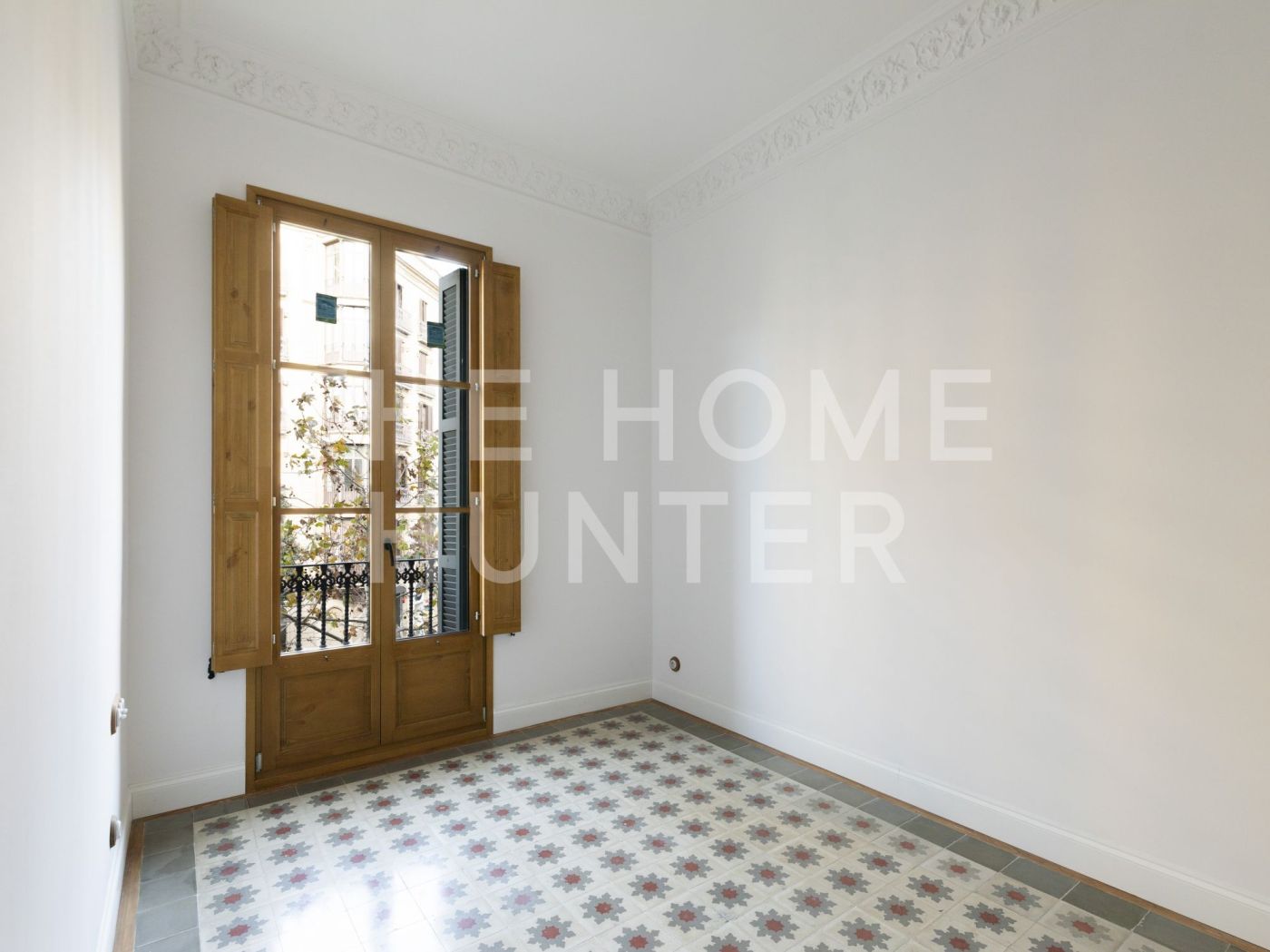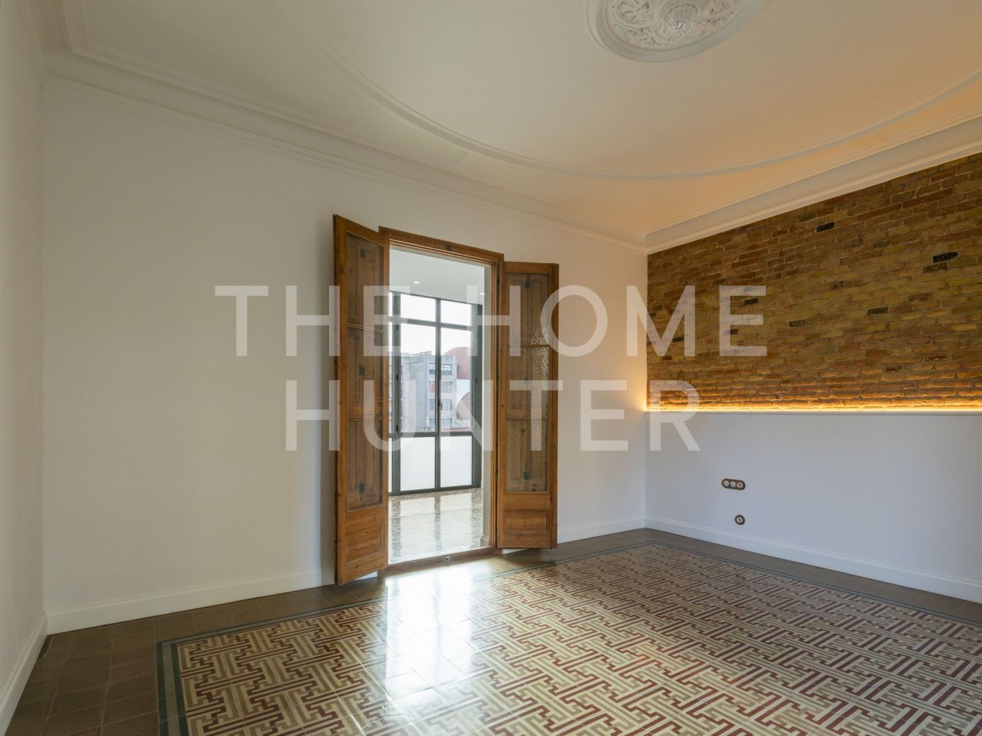 El amplio salón comedor se convierte en el corazón de la vivienda, con salida directa a una galería exterior con vidriera original totalmente recuperada, que baña el espacio de luz natural y carácter. Los suelos hidráulicos originales, los techos restaurados artesanalmente y las impresionantes alturas de hasta 3,40 metros con bóveda catalana conservada en algunas estancias elevan la experiencia de vivir aquí.