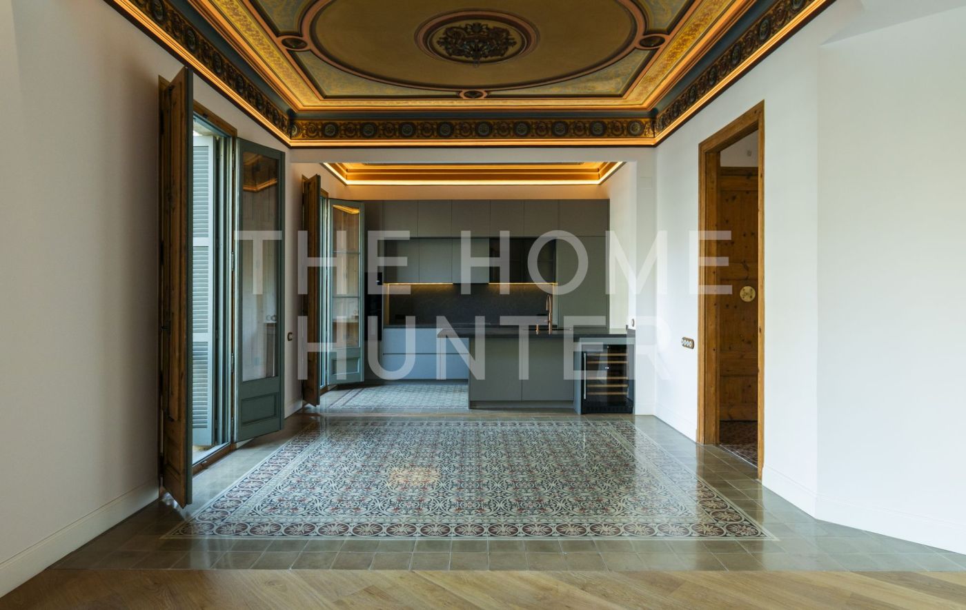 En una de las esquinas más icónicas del Eixample, se encuentra esta joya de 202 m² repercutidos ubicada en una finca regia de 1900 con ascensor. Un piso en segunda planta real que combina a la perfección la esencia del modernismo barcelonés con una rehabilitación contemporánea de altísimo nivel.