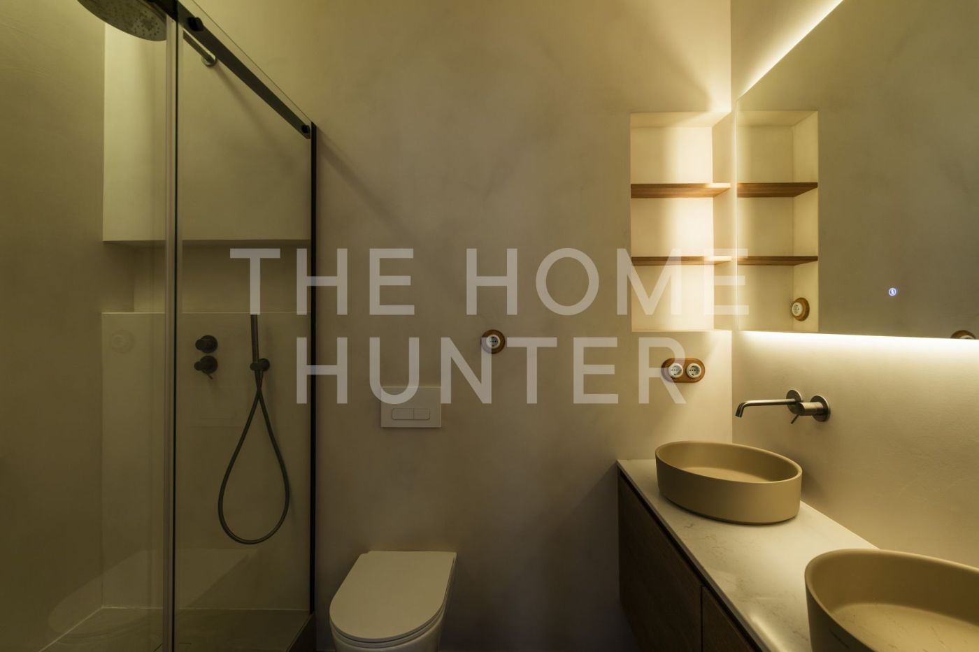 Dispone de tres dormitorios dobles, todos ellos con baño en suite. La suite principal cuenta además con acceso a una galería interior polivalente, perfecta como rincón de lectura, despacho o biblioteca. La vivienda dispone de un cuarto baño de cortesía, zona de aguas independiente y armarios empotrados integrados.