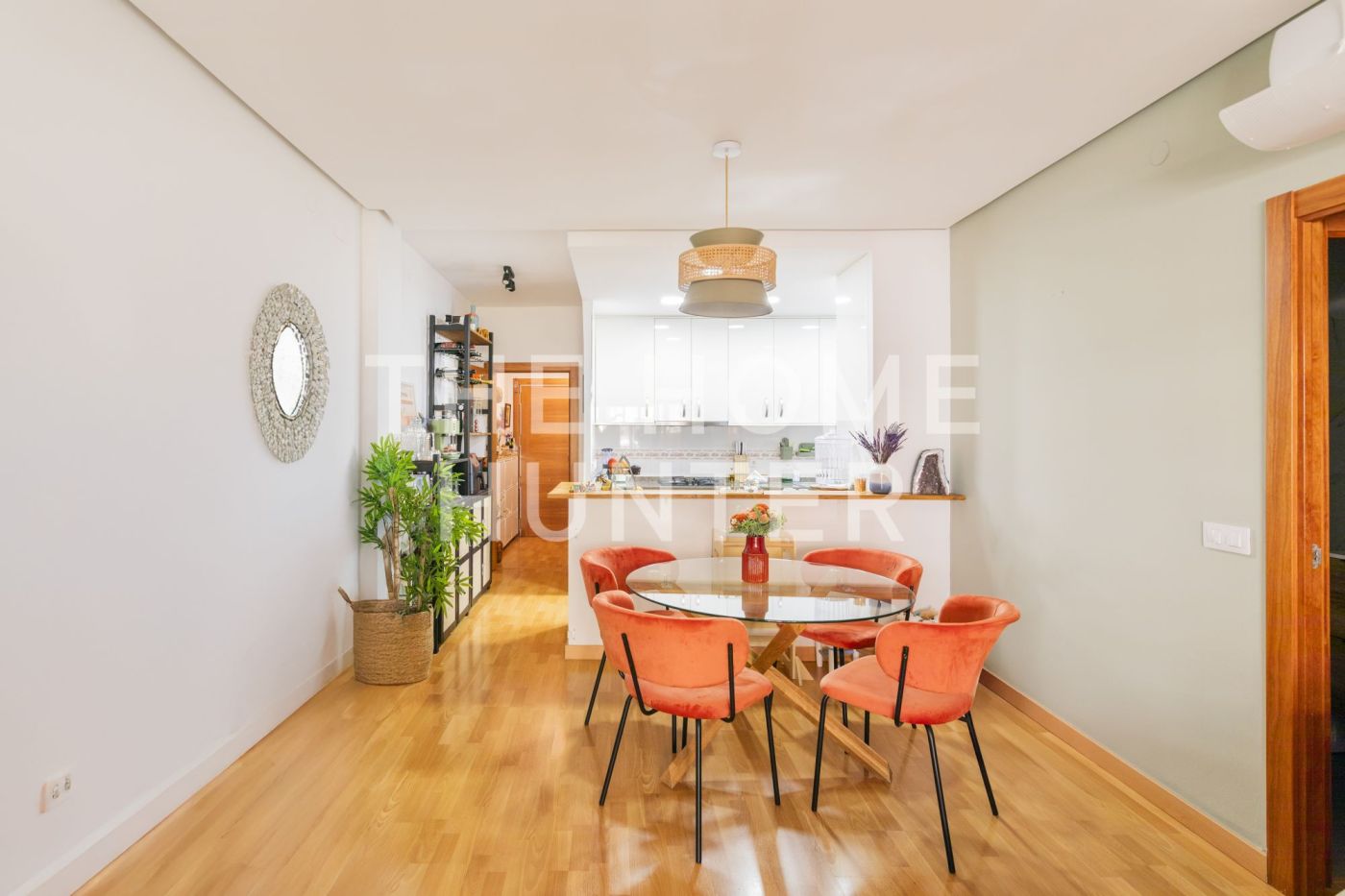 Este piso es un cuarto (quinto real) de 94m² reformado en el año 2023. Tiene tres dormitorios dobles (uno con vestidor), armarios empotrados, dos baños completos (uno en suite), amplio salón-comedor con salida a balcón y cocina abierta. Cuenta con ventanas de doble cristal, aire acondicionado, calefacción individual. La finca es de 1980 y tiene ascensor.