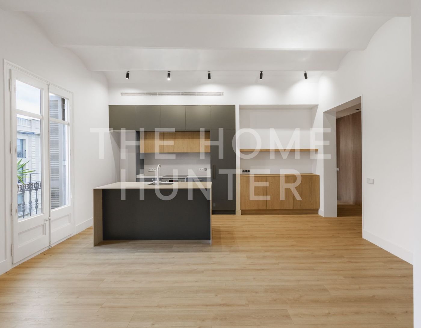 Lo que es este piso recién reformado y listo para estrenar en una finca regia. Es todo un encanto clásico y con la comodidad contemporánea! Está ubicado en una quinta planta de una finca del año 1945 y cuenta con 110 m². Ha sido renovado con un gusto moderno, limpio y elegante pero siempre respetando su personalidad original.