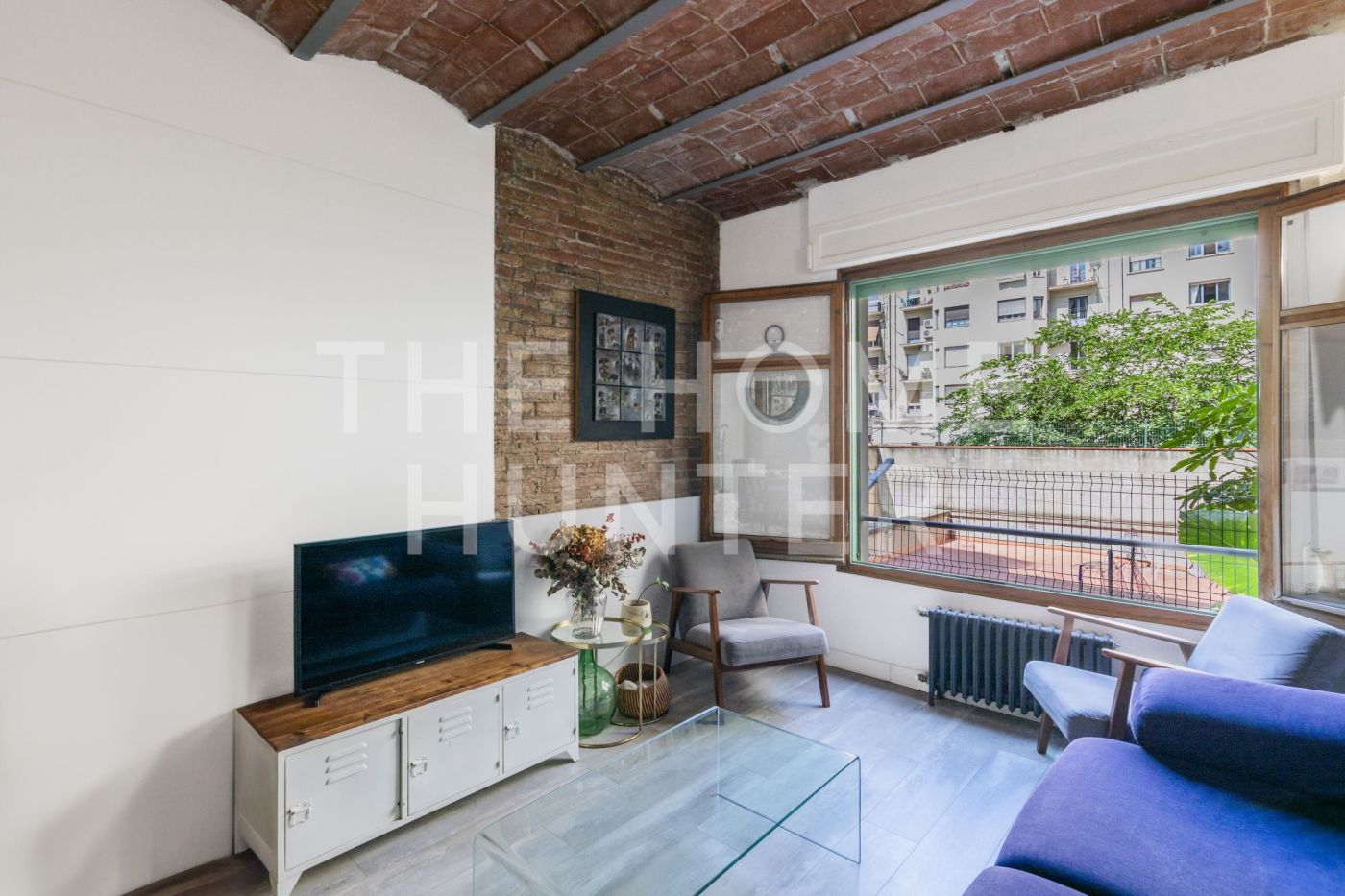 Este piso de 96m² repercutidos (92m² de piso y 8m² de terraza interior) es un entresuelo 2B que mantiene toques originales como el techo con vigas de madera o el tocho a la vista en sus paredes. Tiene un amplio salón-comedor, una cocina abierta y equipada, guarda ropas en la entrada, dos habitaciones dobles (una con salida a patio interior privativo) y un baño completo con ventana con posibilidad y proyecto que se adjunta, de hacer un segundo baño. También cuenta con armarios empotrados, calefacción a gas por radiadores de hierro y trastero en azotea. La finca es de 1935 y tiene dos ascensores.
