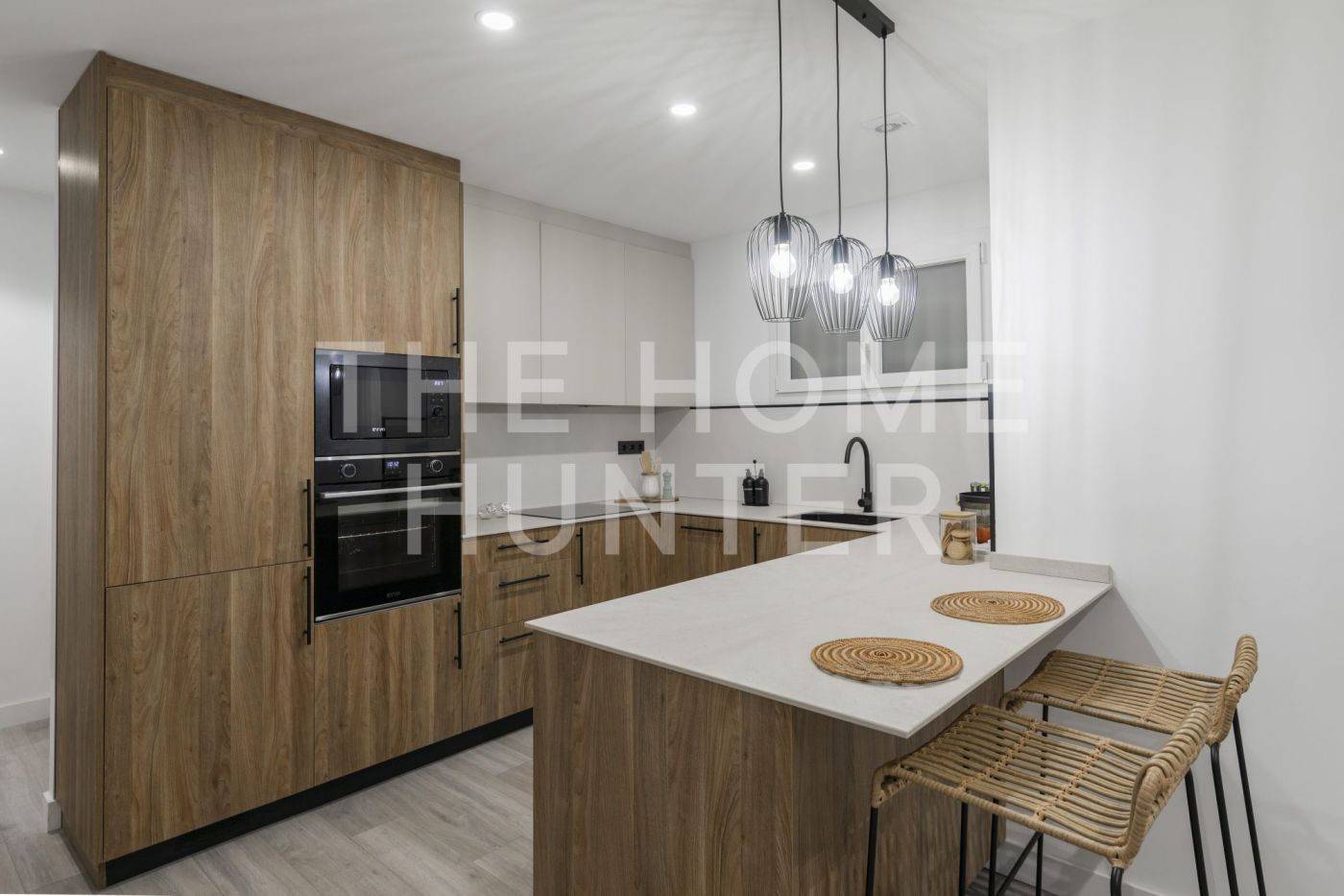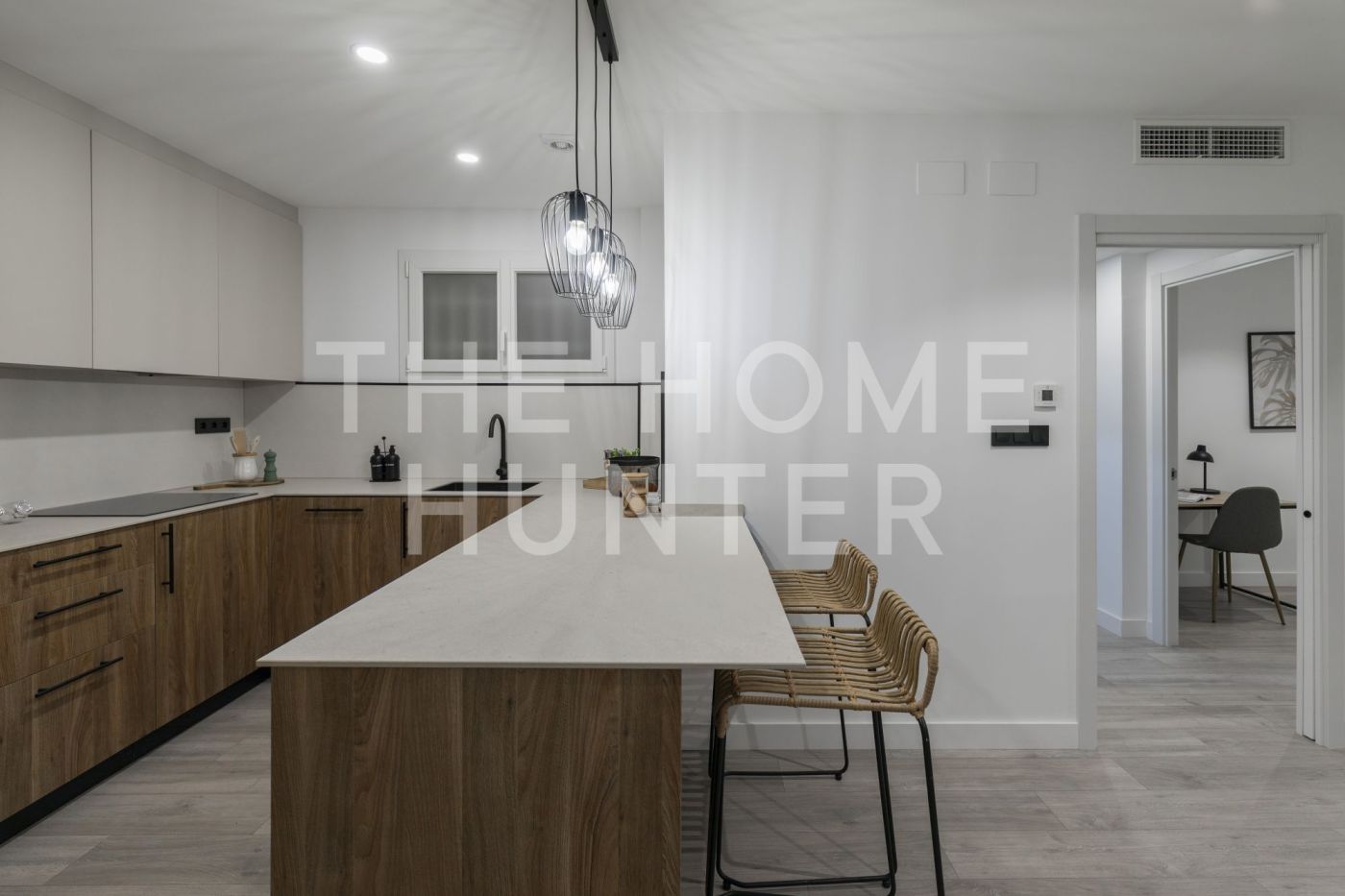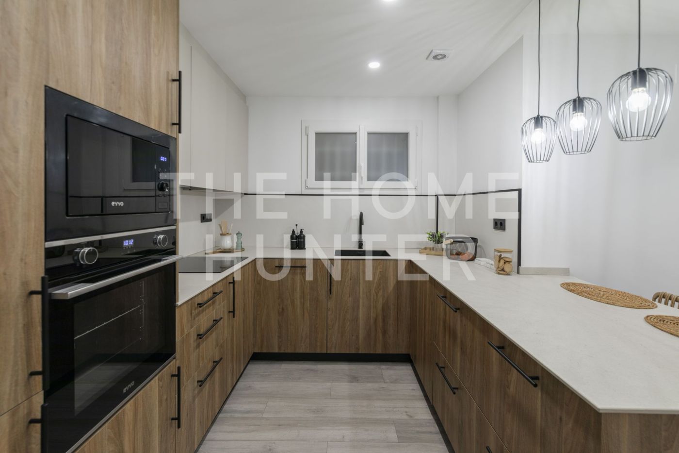Nos recibe un salón comedor en los que es fácil imaginar planes, sobremesas eternas y mañanas tranquilas. El salón se conecta de forma perfecta con una cocina abierta, equipada al detalle y destacada por una isla central que sirve tanto para cocinar como para charlar con amigos mientras abres una botella de vino.