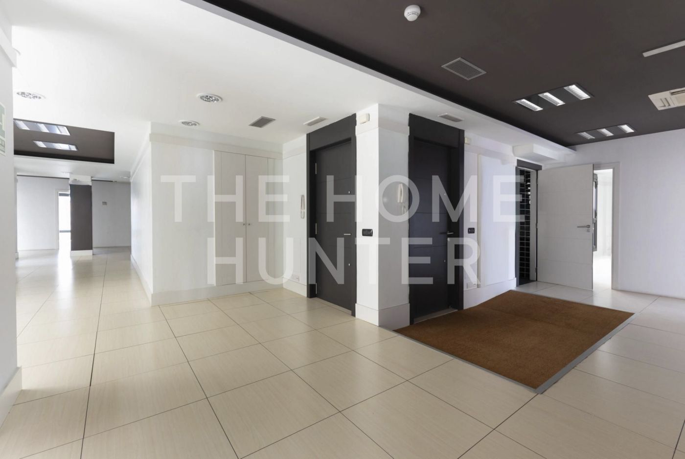 Cuenta con elegantes acabados, suelo técnico, falso techo con luminarias empotradas, canalizaciones perimetrales de cableado, fibra óptica y sistema de climatización independiente por plantas con aire acondicionado frío/calor.