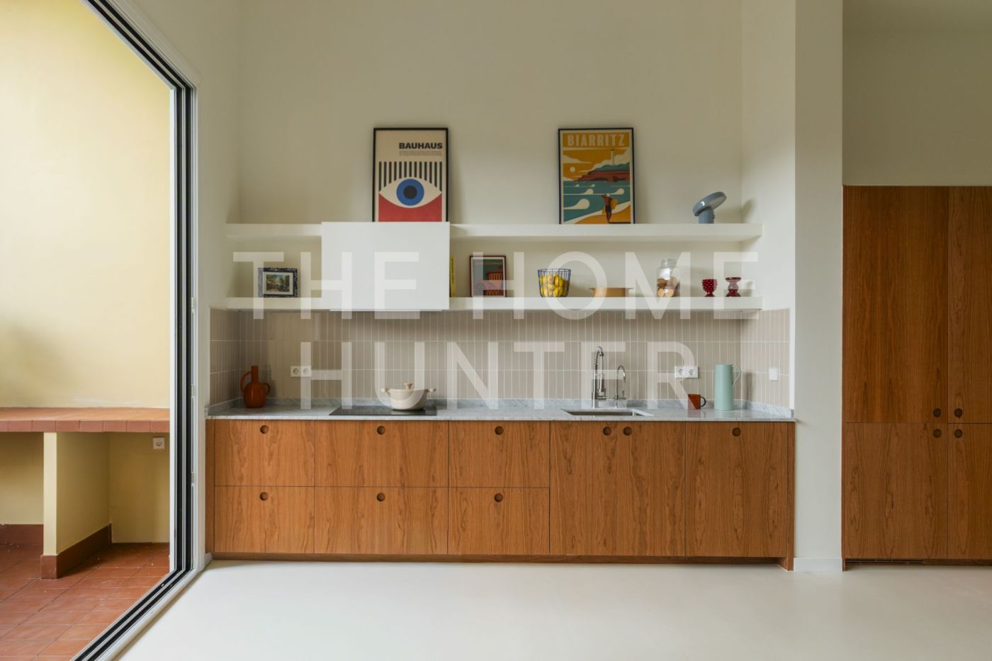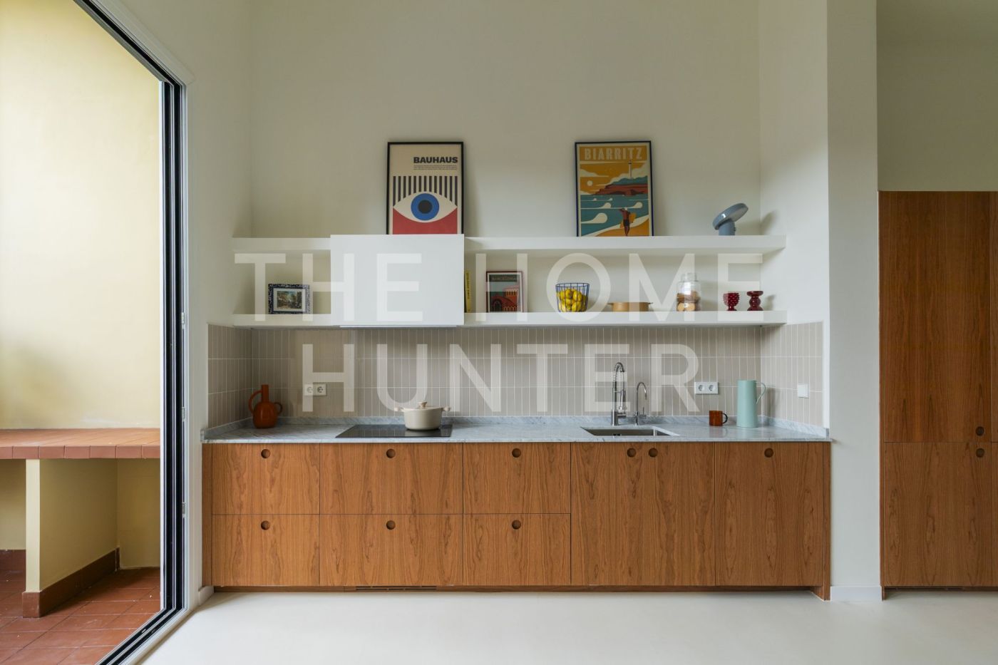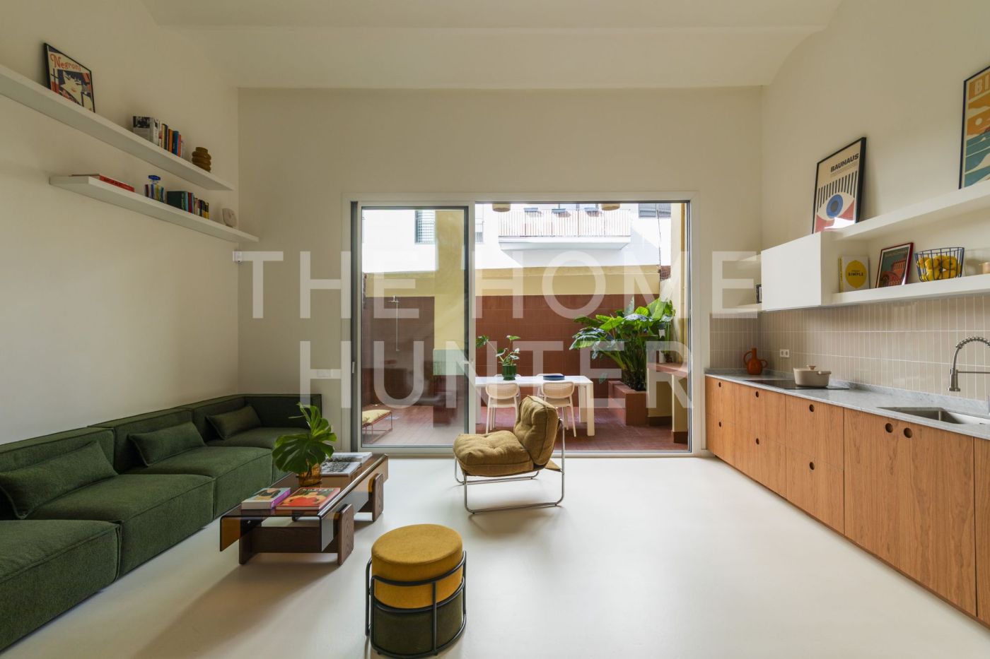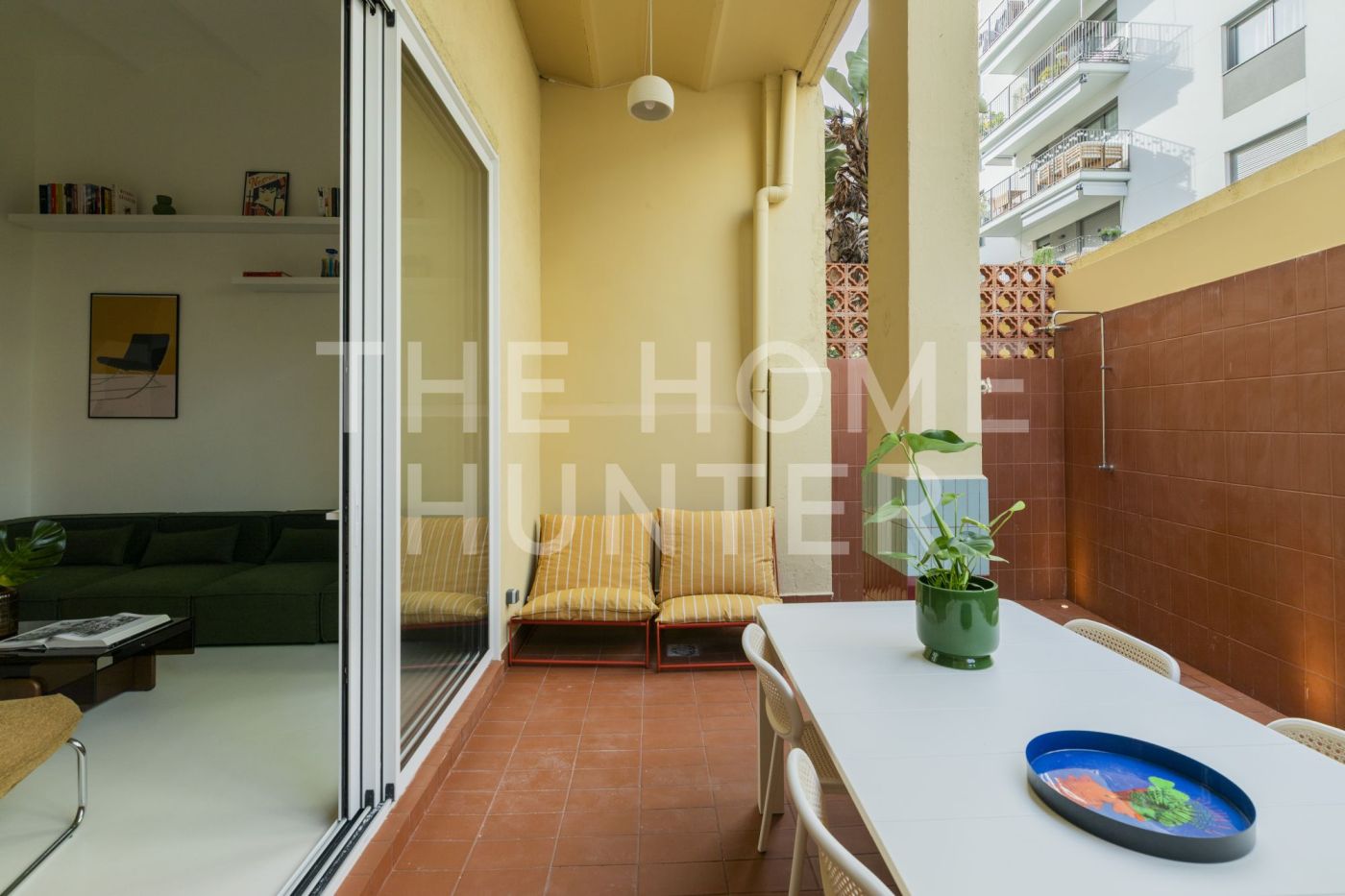 Desde el salón accedemos a un patio privado de 10 m², un auténtico oasis urbano: un espacio versátil que cuenta con zona de lavandería, encimera de obra perfecta para comidas en grupo y una agradable área chill out.