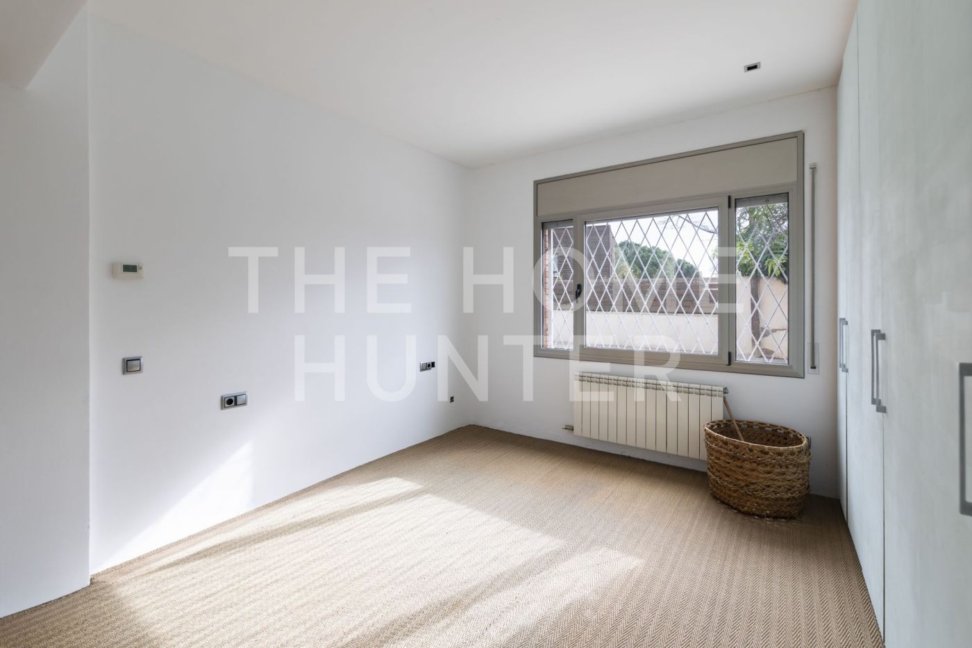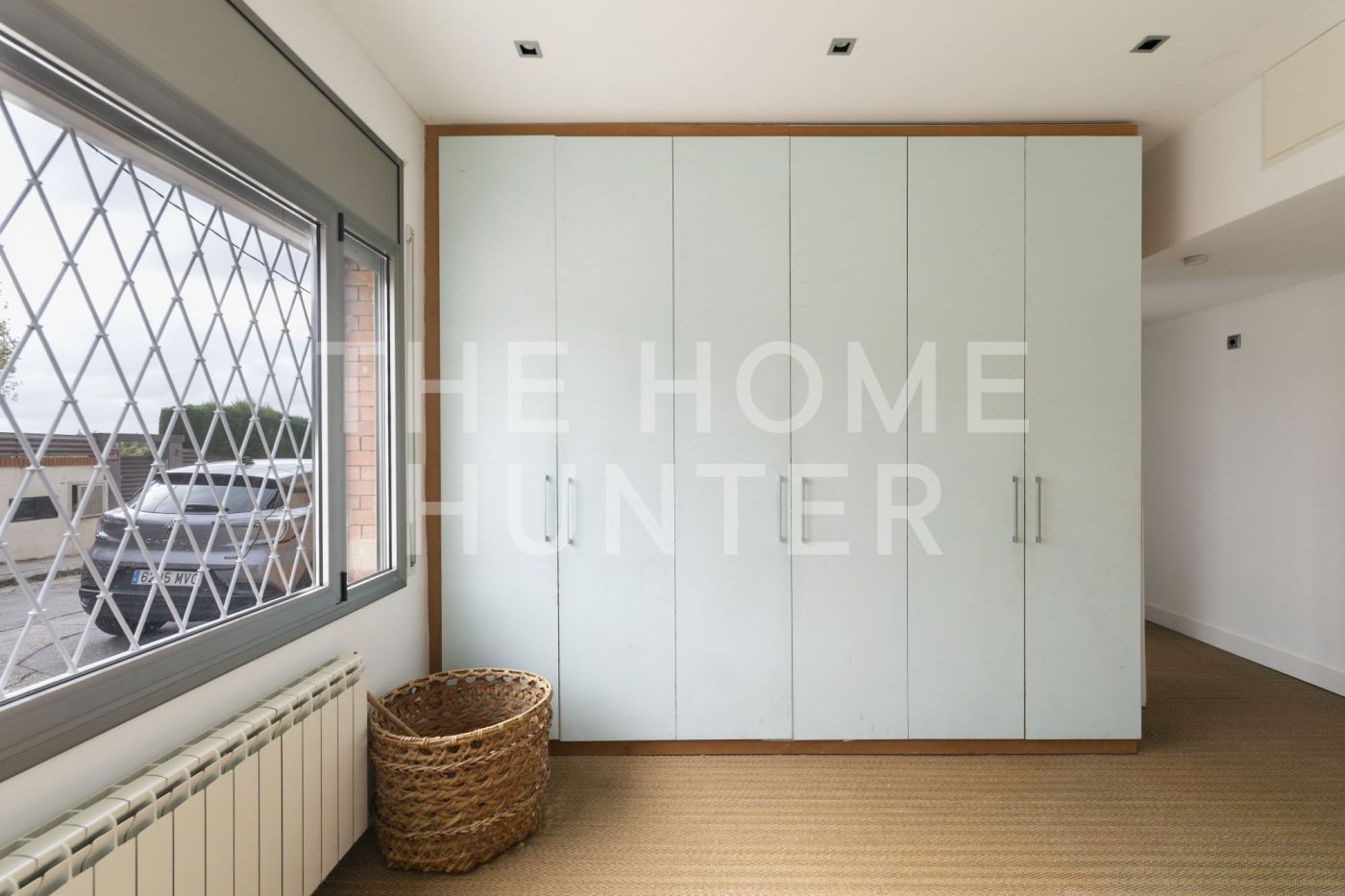 Cuenta con 3 dormitorios, uno doble tipo suite, y 2 baños completos, uno en cada planta. Todos los espacios incluyen armarios empotrados y grandes ventanales climalit que llenan la casa de luz y dan amplitud.