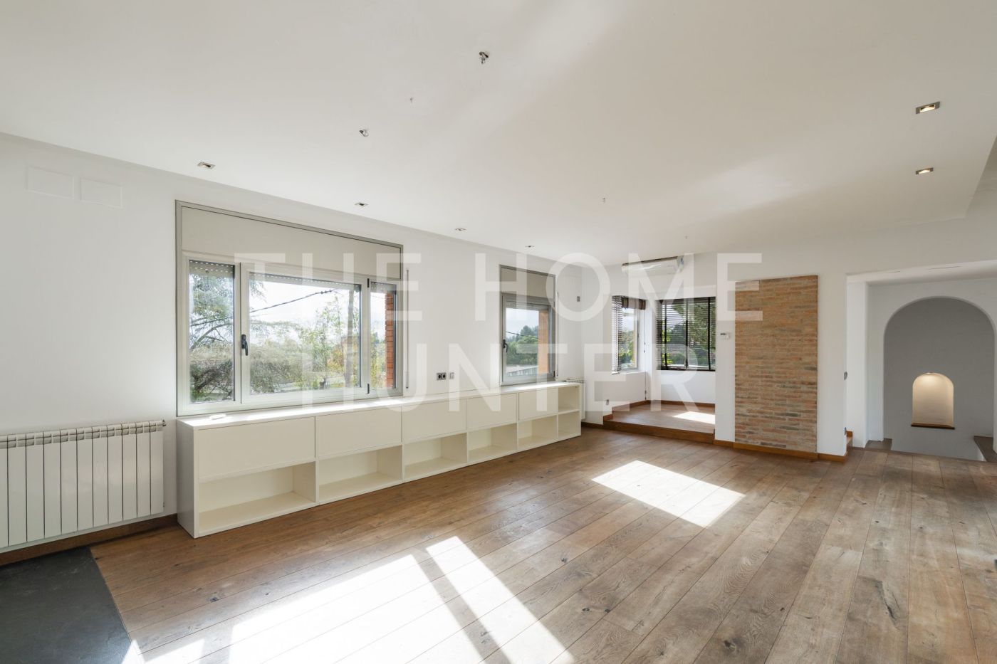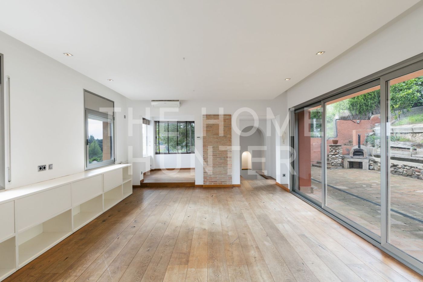 El salón–comedor es amplio y acogedor, con chimenea y una zona independiente ideal como despacho o sala extra. Desde aquí, las vistas se abren hacia la terraza y un jardín con piscina, un espacio pensado para disfrutar cada día...como si estuvieras de vacaciones.