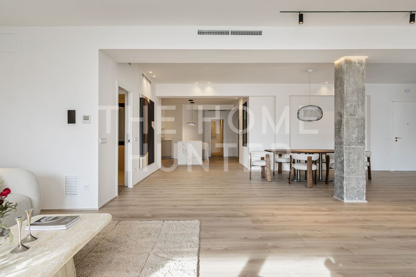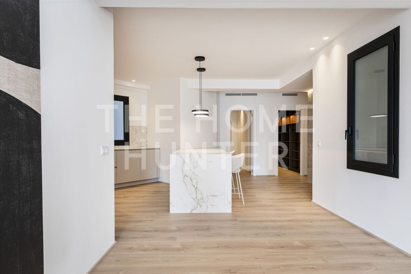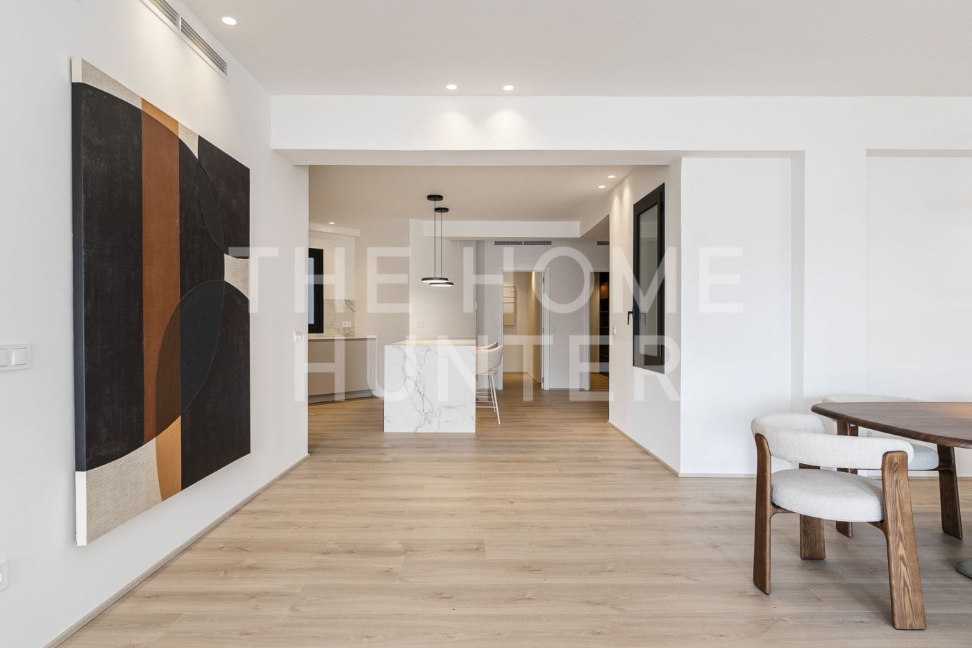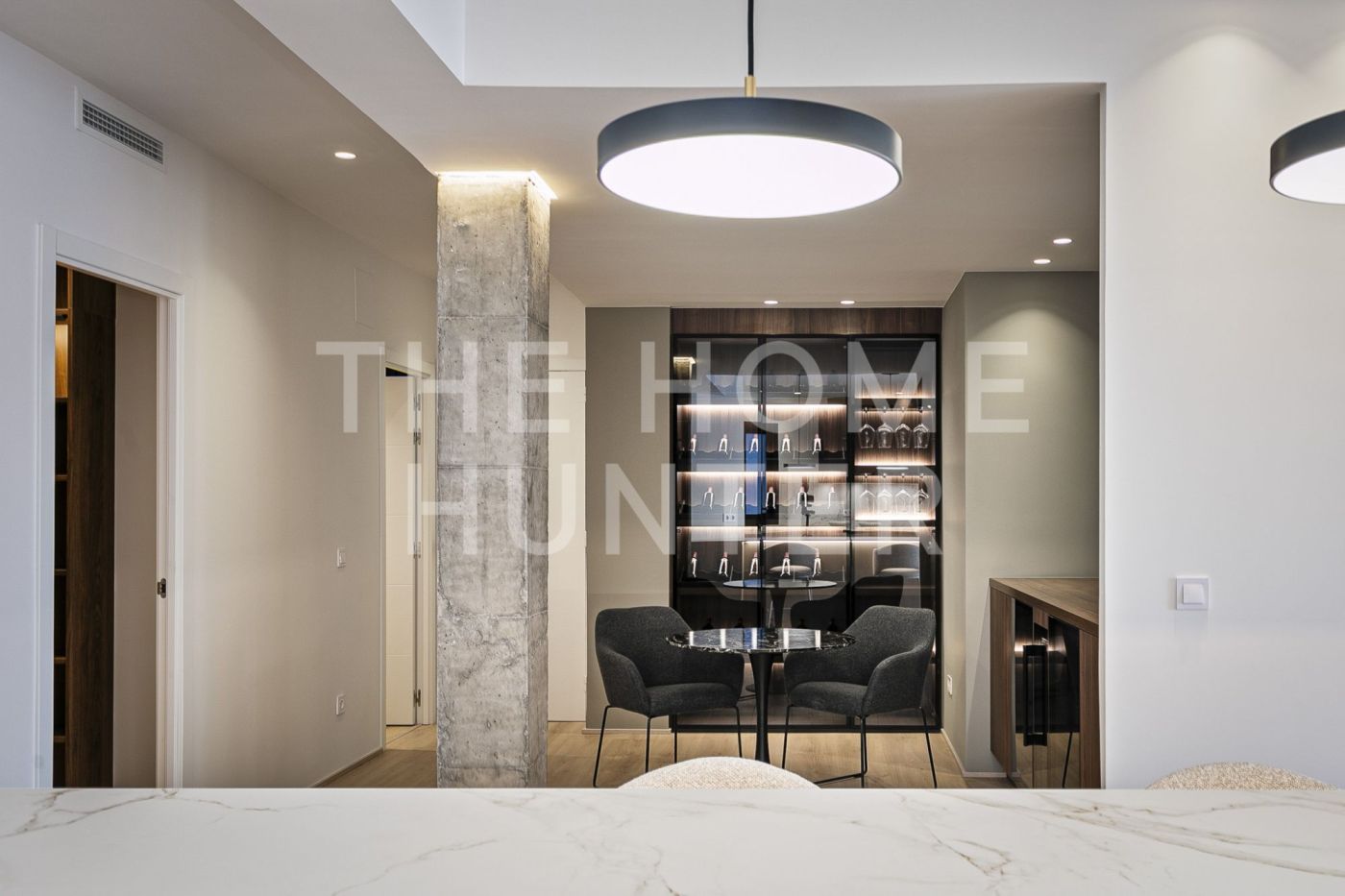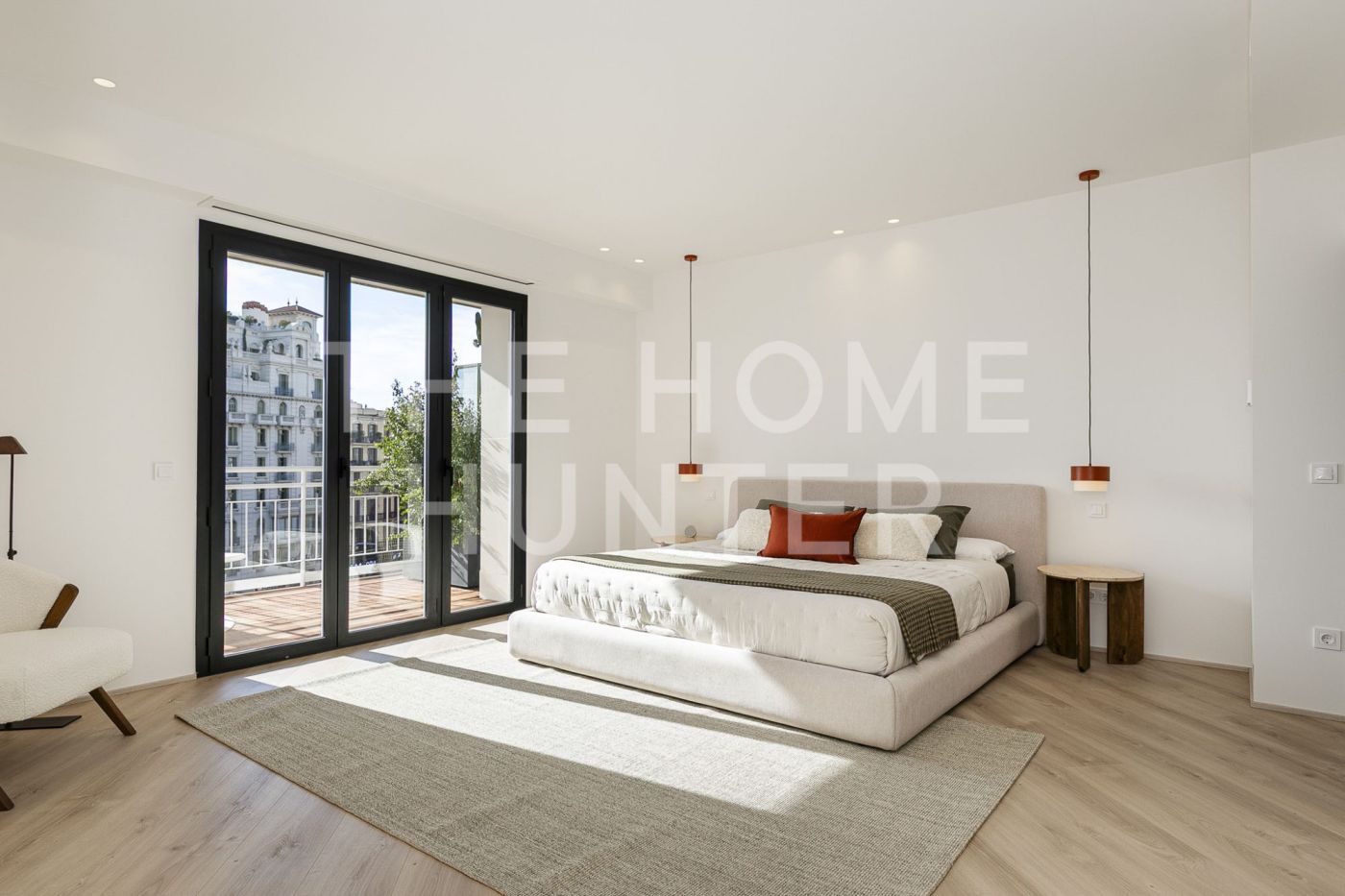 The jewel of the apartment is a 90 m² living–dining room, a stunning, super bright space with direct access to a terrace where life flows effortlessly. The open kitchen with an island is one of those that make you want to cook even if you don’t enjoy it. It’s fully equipped, beautiful, and connects to the heart of the home. It also has a coffee area and a wine corner, because priorities must be clear.
