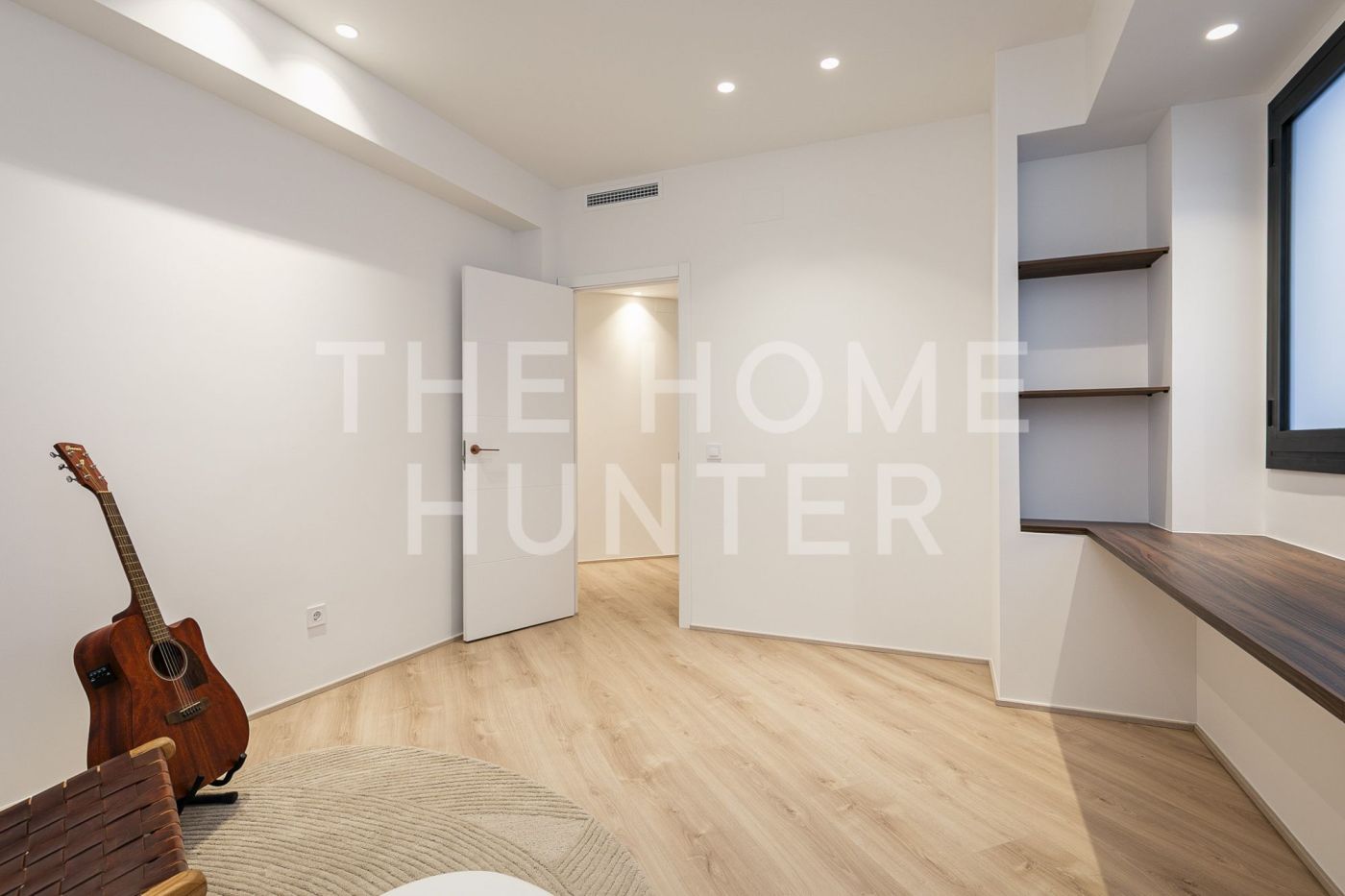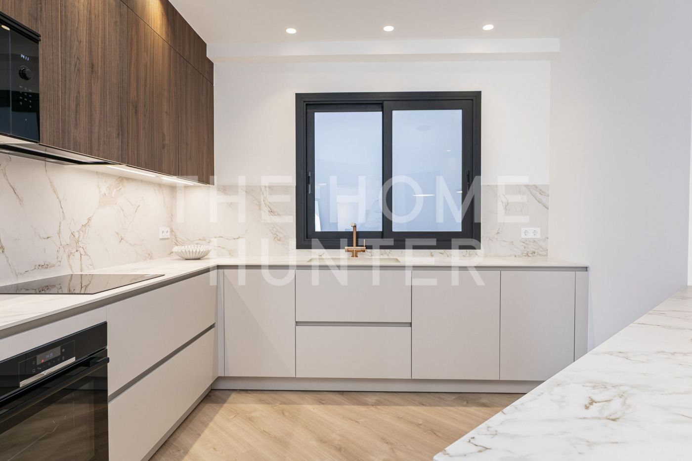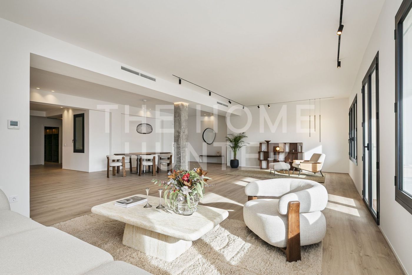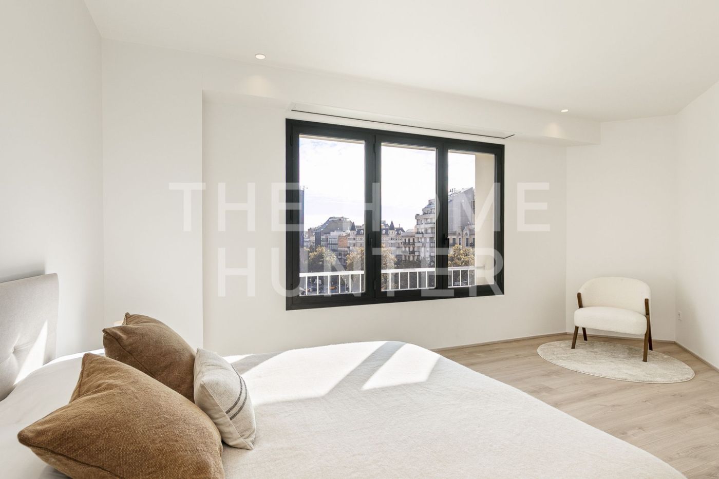 The jewel of the apartment is a 90 m² living–dining room, a stunning, super bright space with direct access to a terrace where life flows effortlessly. The open kitchen with an island is one of those that make you want to cook even if you don’t enjoy it. It’s fully equipped, beautiful, and connects to the heart of the home. It also has a coffee area and a wine corner, because priorities must be clear.