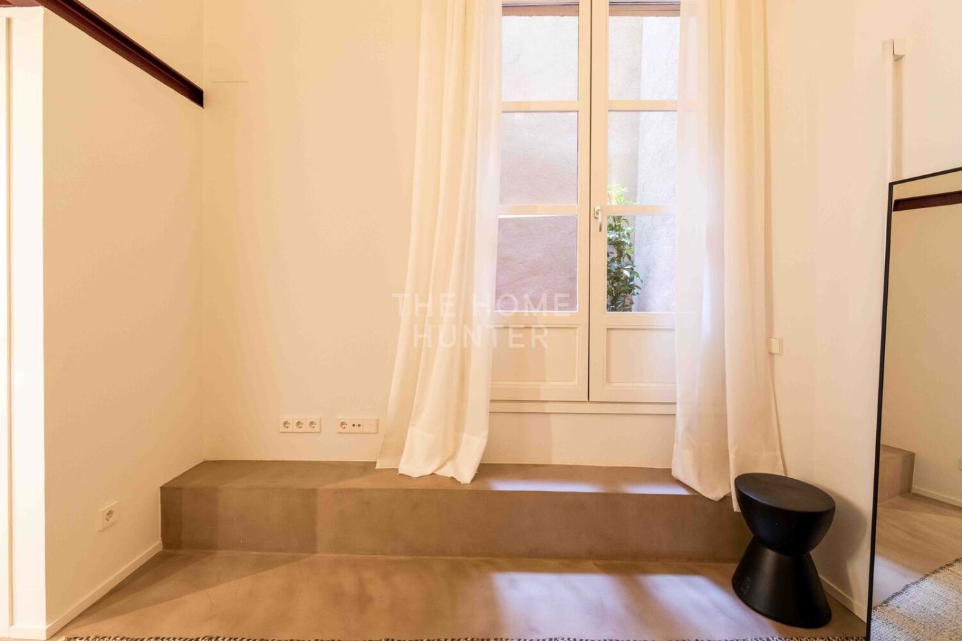 This apartment is a ground floor unit with its main entrance through the building and measures 59 m². It is laid out with one bedroom (with the possibility of creating a second bedroom), a living/dining room, an open, fully equipped kitchen, a bathroom, a 4 m² patio, and a laundry closet. It features built-in wardrobes, double glazing, exposed wooden beams, and a ducted heating/cooling system. The building dates from 1924 but was fully renovated in 2022.