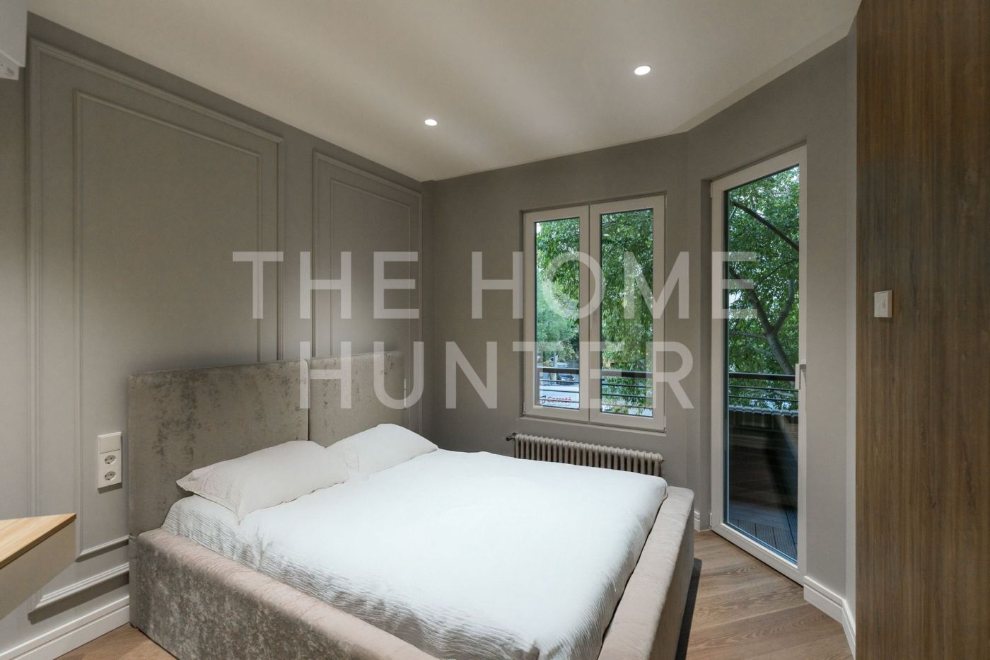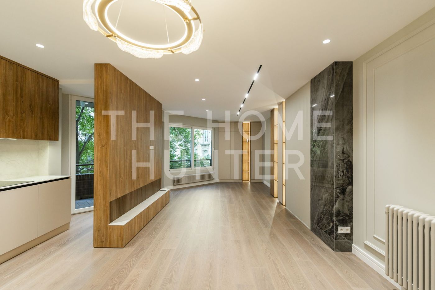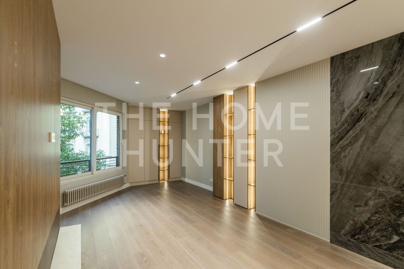 This 122m² apartment (117m² of living space and 11m² from two terraces) is located on the first floor (second floor in American terms) and has been recently renovated. It is entirely exterior-facing, featuring three double bedrooms (two with access to a balcony and one en suite with a walk-in closet), two full bathrooms (one en suite), a guest toilet, a spacious living-dining room with a balcony, and an open, fully equipped kitchen. It has double-glazed windows, ducted air conditioning as well as split units in the bedrooms, and individual gas heating. There are built-in wardrobes and natural oak wood parquet floors. The building, dating from 1881, has two elevators and optional parking.