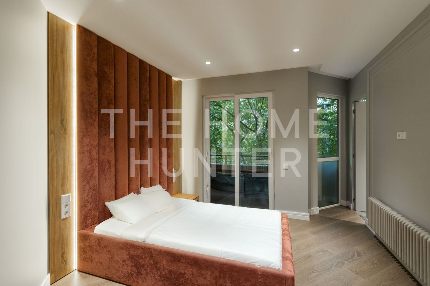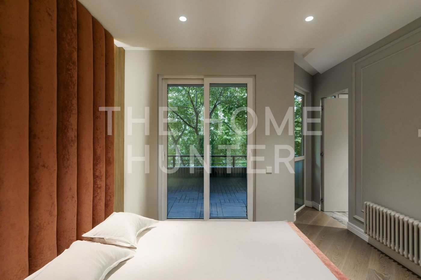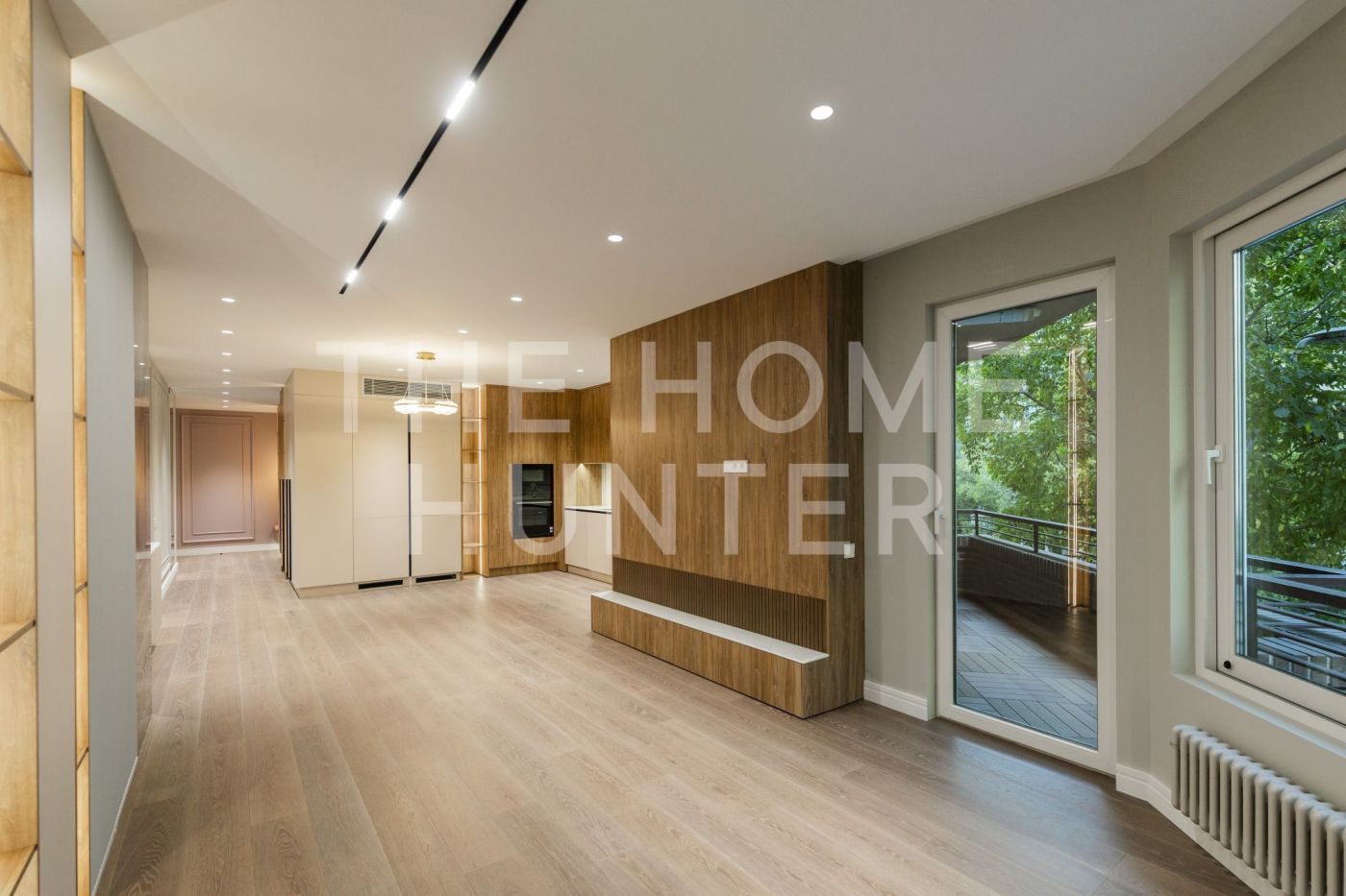 This 122m² apartment (117m² of living space and 11m² from two terraces) is located on the first floor (second floor in American terms) and has been recently renovated. It is entirely exterior-facing, featuring three double bedrooms (two with access to a balcony and one en suite with a walk-in closet), two full bathrooms (one en suite), a guest toilet, a spacious living-dining room with a balcony, and an open, fully equipped kitchen. It has double-glazed windows, ducted air conditioning as well as split units in the bedrooms, and individual gas heating. There are built-in wardrobes and natural oak wood parquet floors. The building, dating from 1881, has two elevators and optional parking.