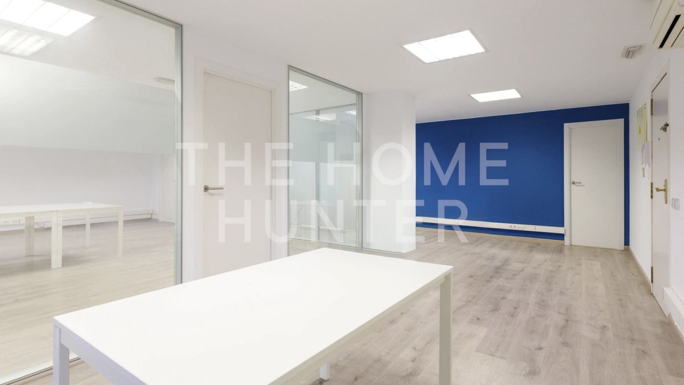 This office for rent, located on the mezzanine floor, with a total built area of 125 m², of which 112 m² correspond to office space and 13 m² to common areas, is a space distributed into a large open-plan working area and three independent offices, allowing for a functional and versatile layout suitable for different types of professional activity.