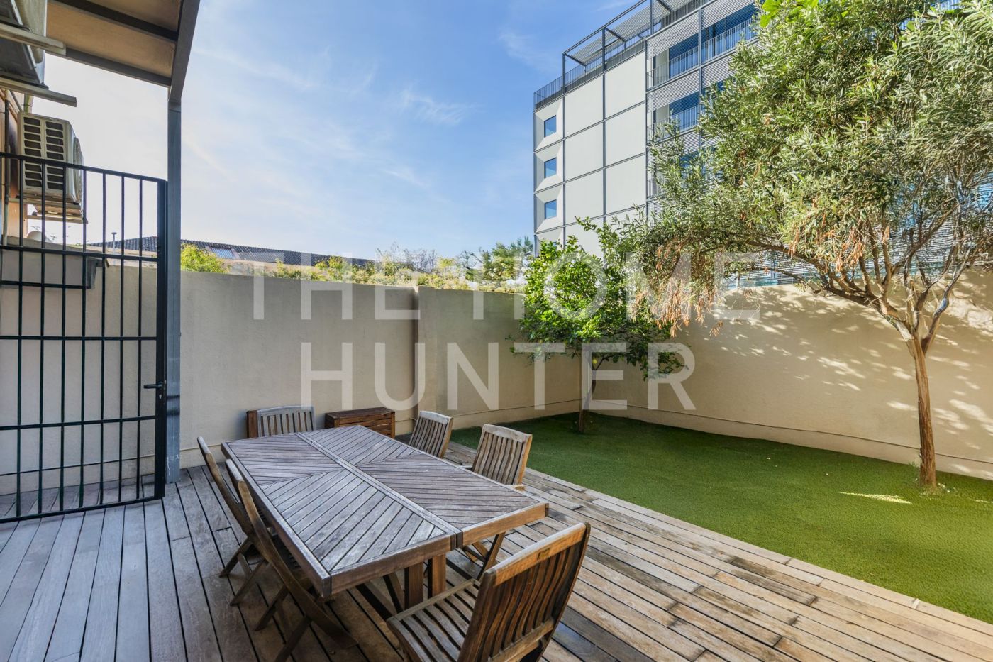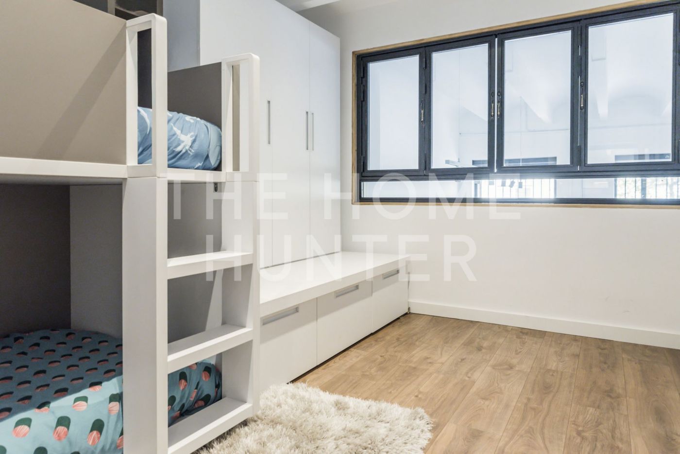 The patio is a true oasis in the heart of the city, where having breakfast in the sun, setting up a chill-out area, or disconnecting from the world could become part of your daily routine. The large living-dining room and the spacious open kitchen are the standout features of this apartment, as they connect to the social area, creating a perfect space to enjoy with family or friends.
