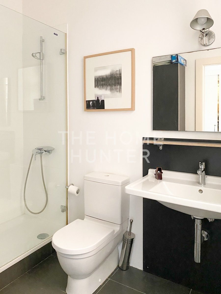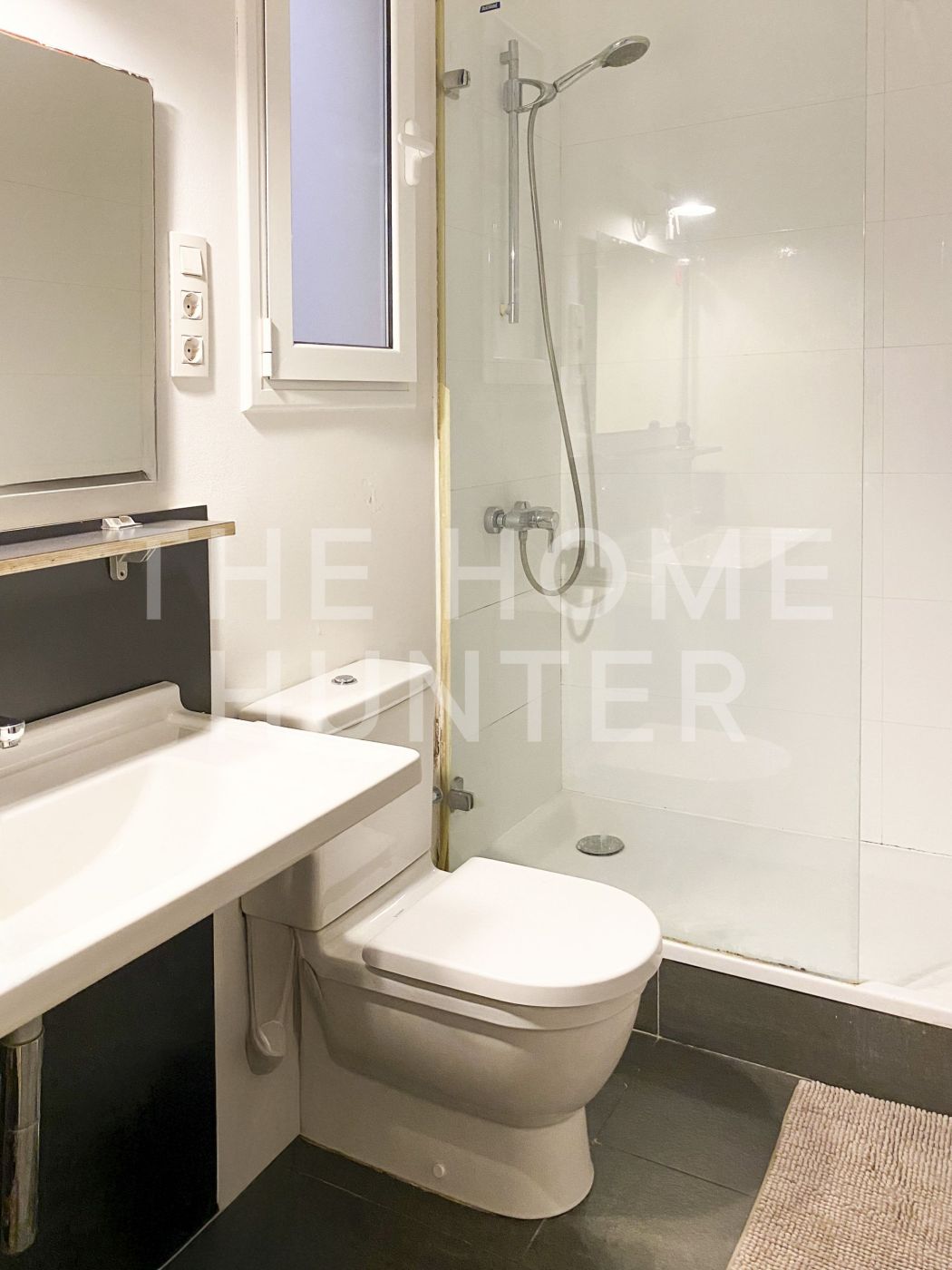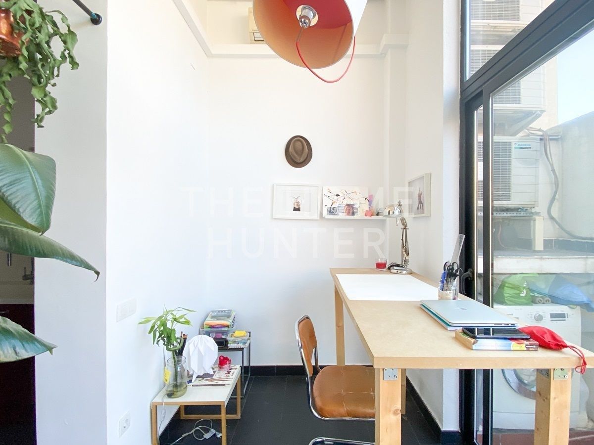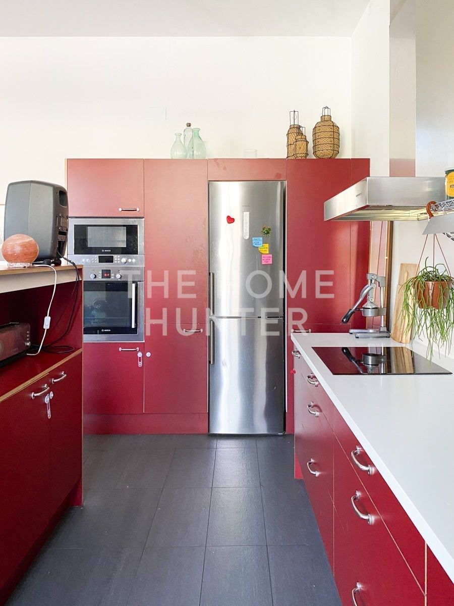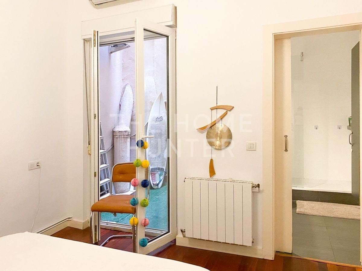 The flat is on the 1st floor and measures 120 m². The living-dining room and the kitchen are wonderful, sharing the same space, and from both, you can step out onto this beautiful 60 m² terrace. But before going outside, there are 2 studies, one to the right and one to the left, both leading to the garden. They are spaces full of light, life, plants, and tranquility. Toward the sleeping area, a hallway leads to 3 bedrooms, one of them with an en-suite bathroom, two sharing a 5 m² patio, and finally another bathroom. The flat is rented unfurnished.