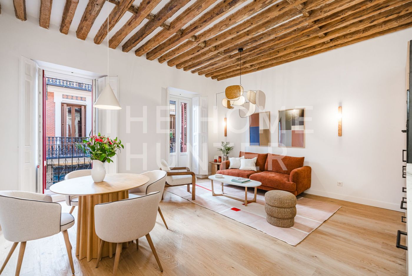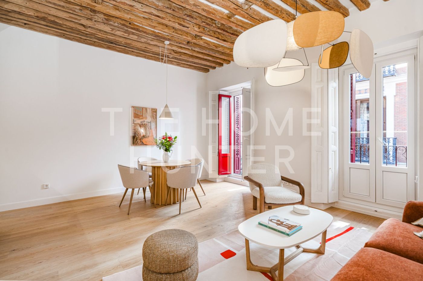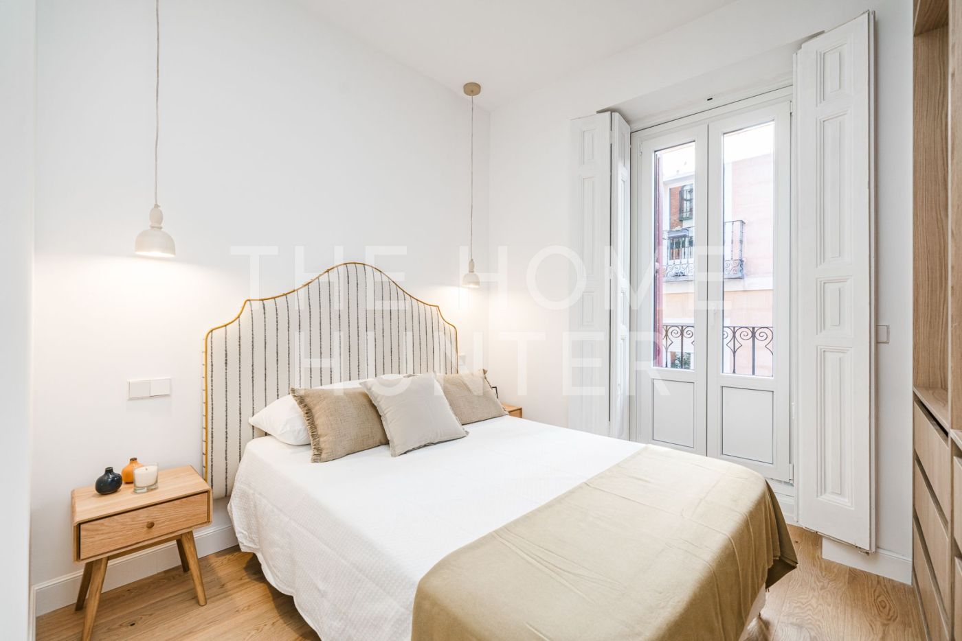 The 81 m² are distributed in a well-balanced way: with an independent kitchen, two double bedrooms, a full bathroom, and a living room that opens onto three balconies overlooking the peaceful atmosphere of Malasaña.