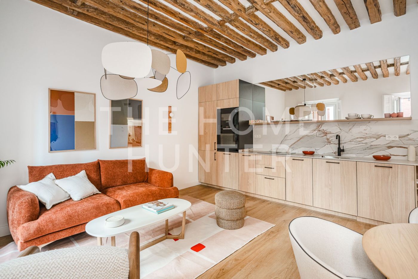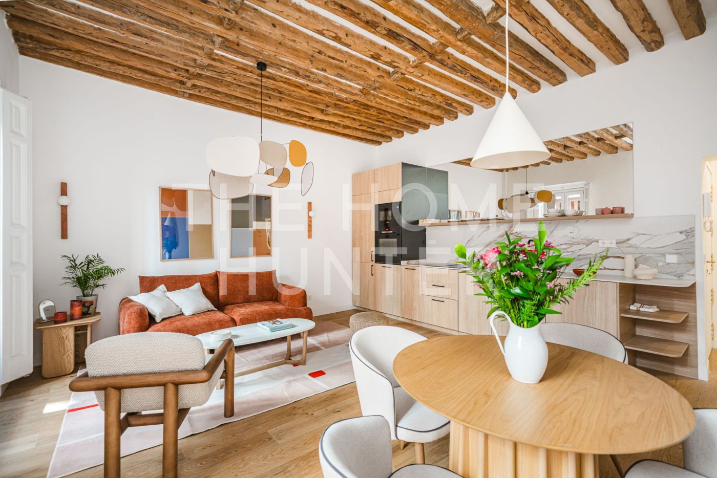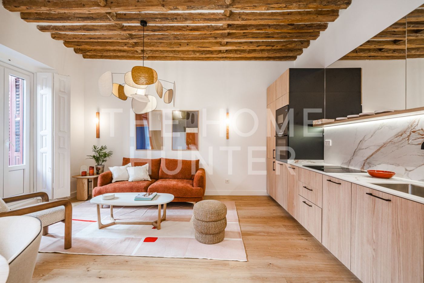 The 81 m² are distributed in a well-balanced way: with an independent kitchen, two double bedrooms, a full bathroom, and a living room that opens onto three balconies overlooking the peaceful atmosphere of Malasaña.