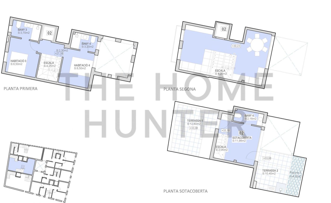 En la última y cuarta planta se encuentra un espacio de 12 m² que podría tener muchísimas posibilidades, a parte, dispone de un baño completo. Y también contará con una terraza solárium de 27 m² con una pequeña piscina con vistas al mar.
