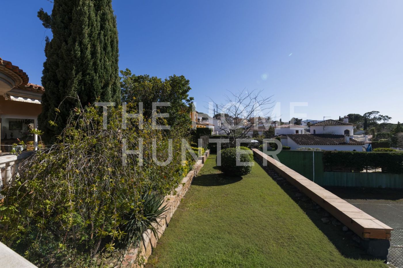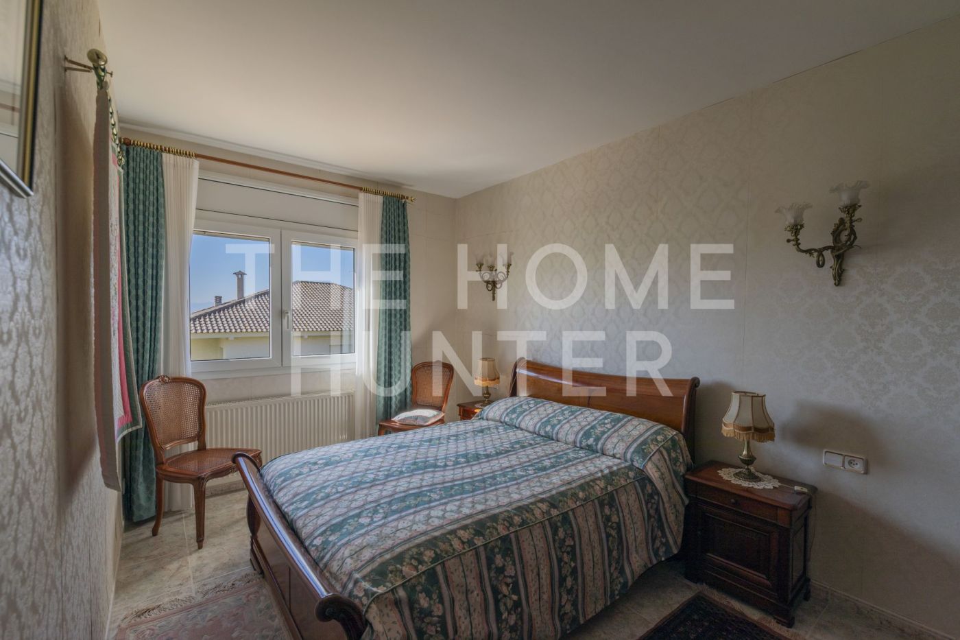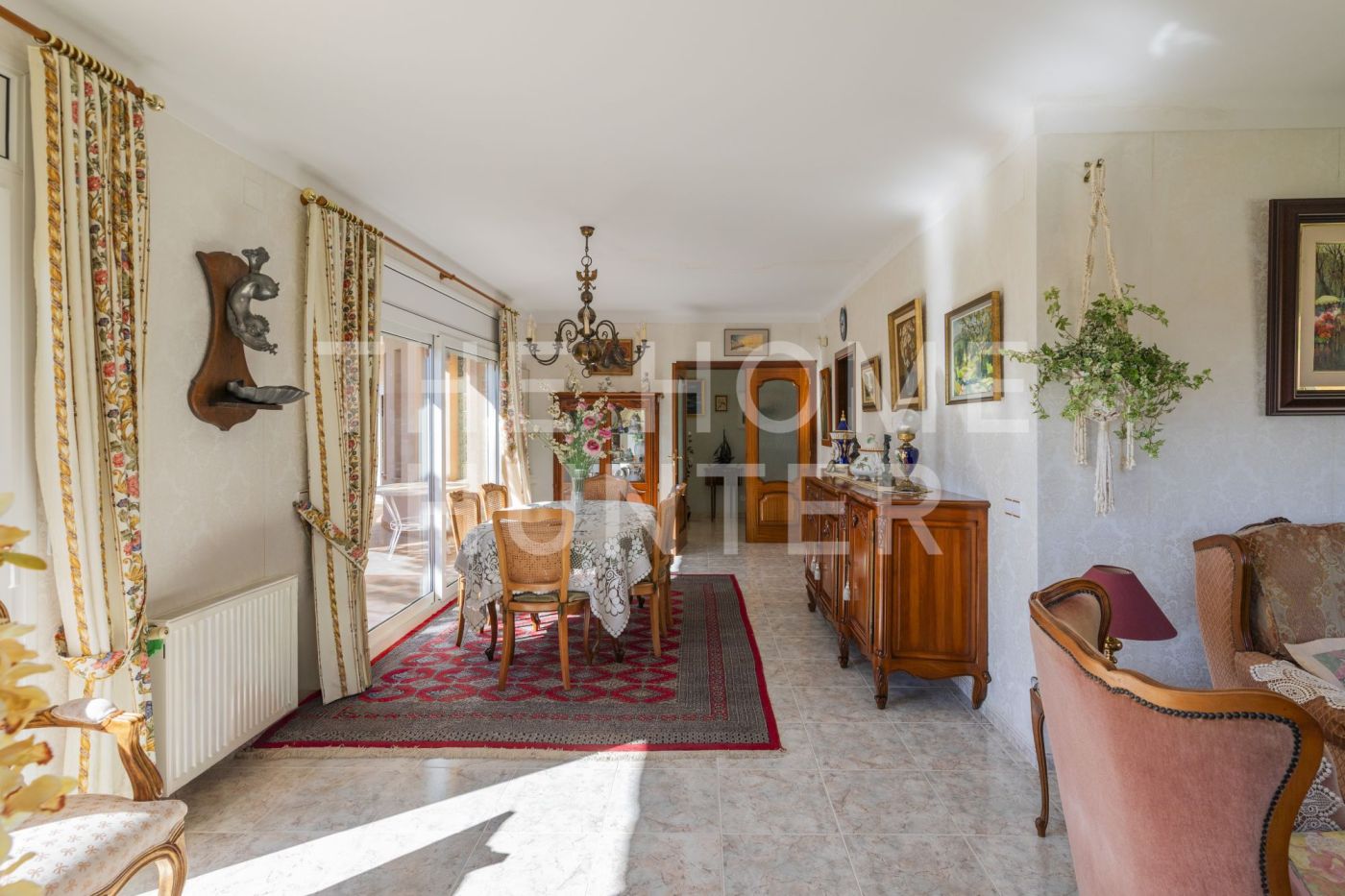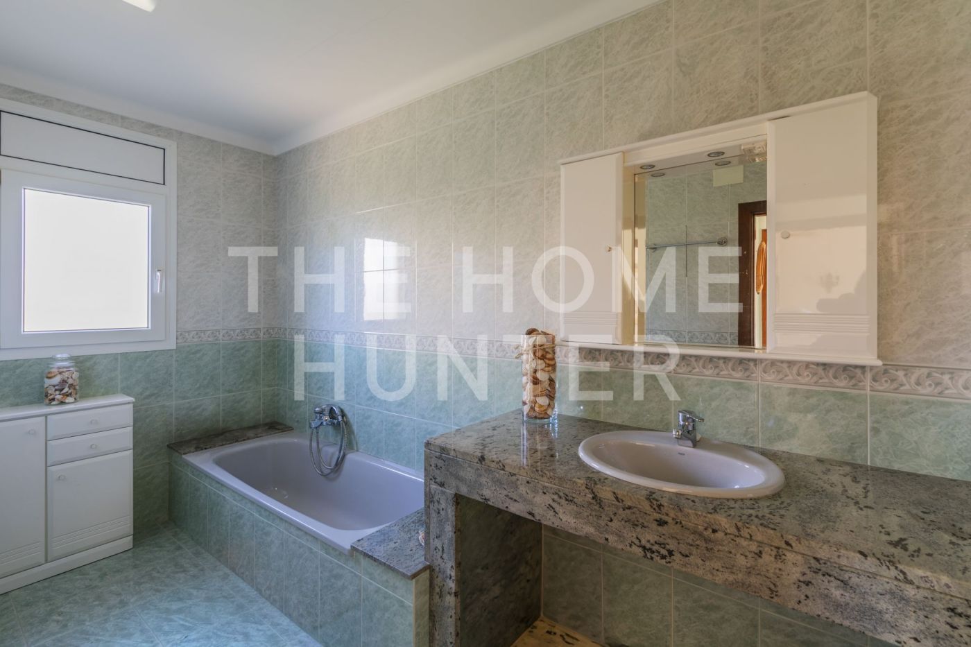 Esta casa de 312m² repercutidos se encuentra en una parcela de 949m² y tiene tres plantas. En la principal hay amplio salón-comedor con chimenea y salida a terraza de 30m², cocina office equipada, dos dormitorios dobles con vistas al jardín, un baño completo, un aseo y armarios empotrados. En la primera planta se encuentra la master suite con baño y un pequeño salón con salida a terraza con vistas. En la planta inferior hay un dormitorio con salida al jardín y una sala polivalente con un baño completo. Tiene ventanas de climalit doble, un garaje tipo box para dos coches y una zona comunitaria con piscina y pista de tenis. La finca es de 1978.