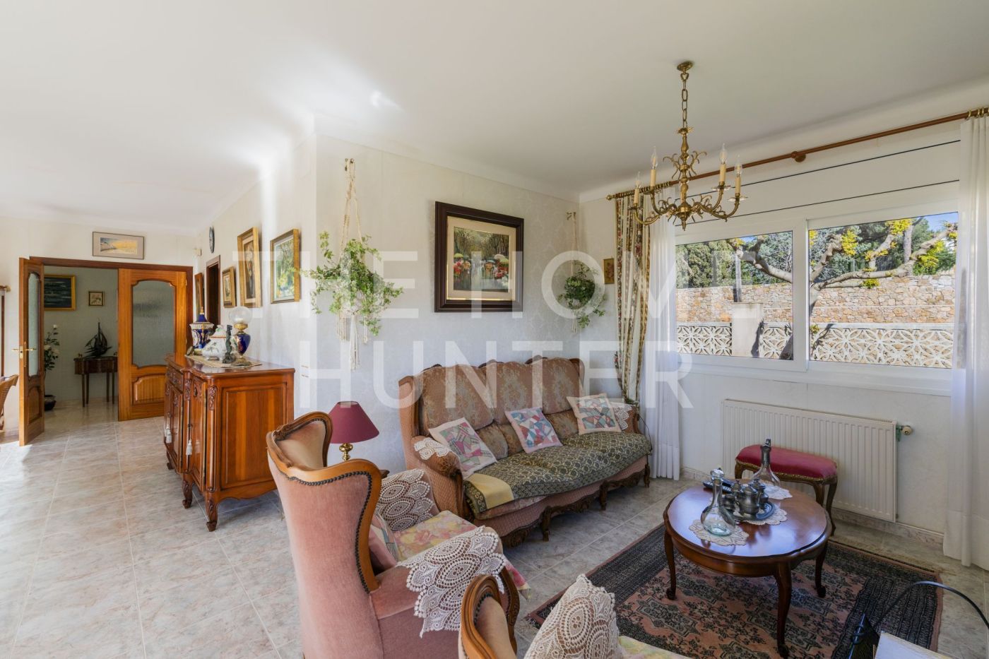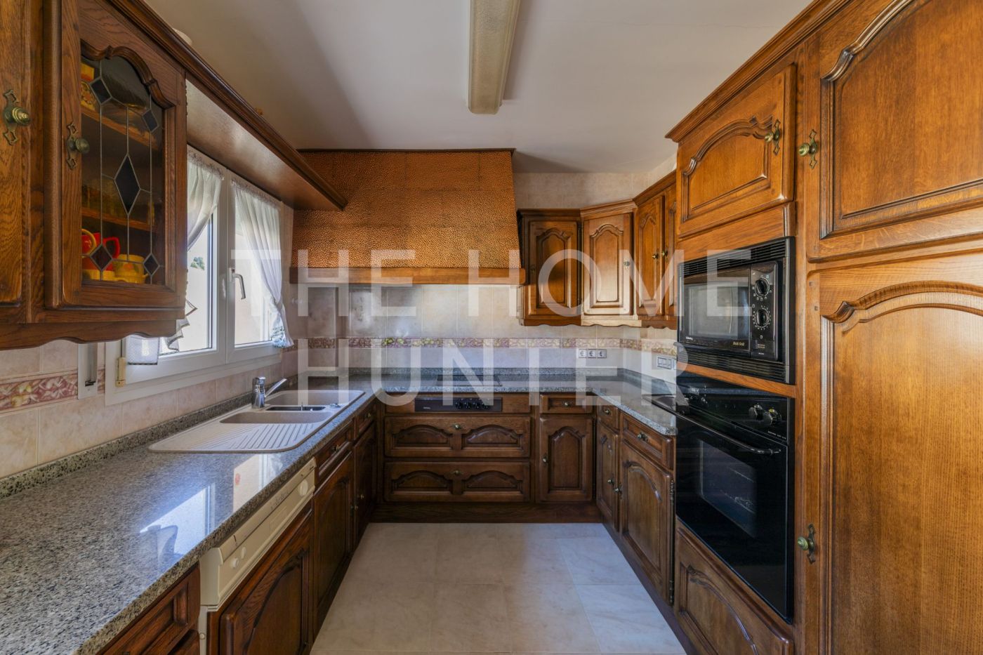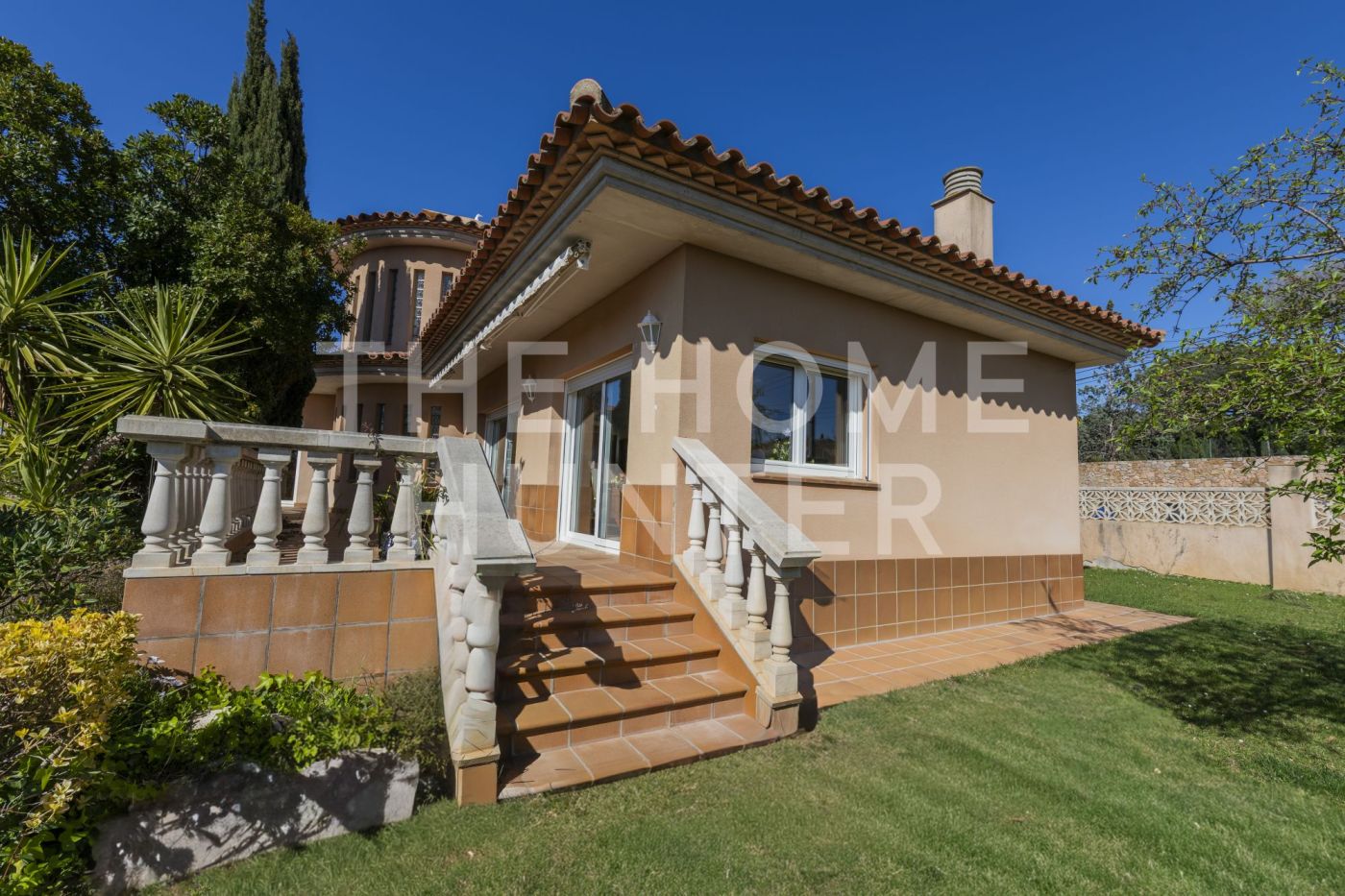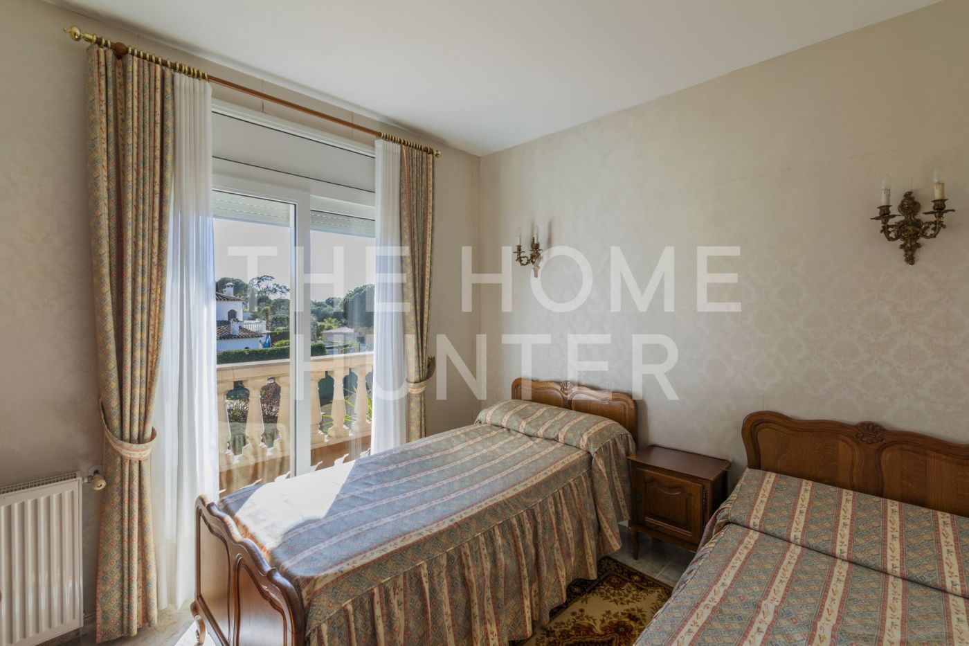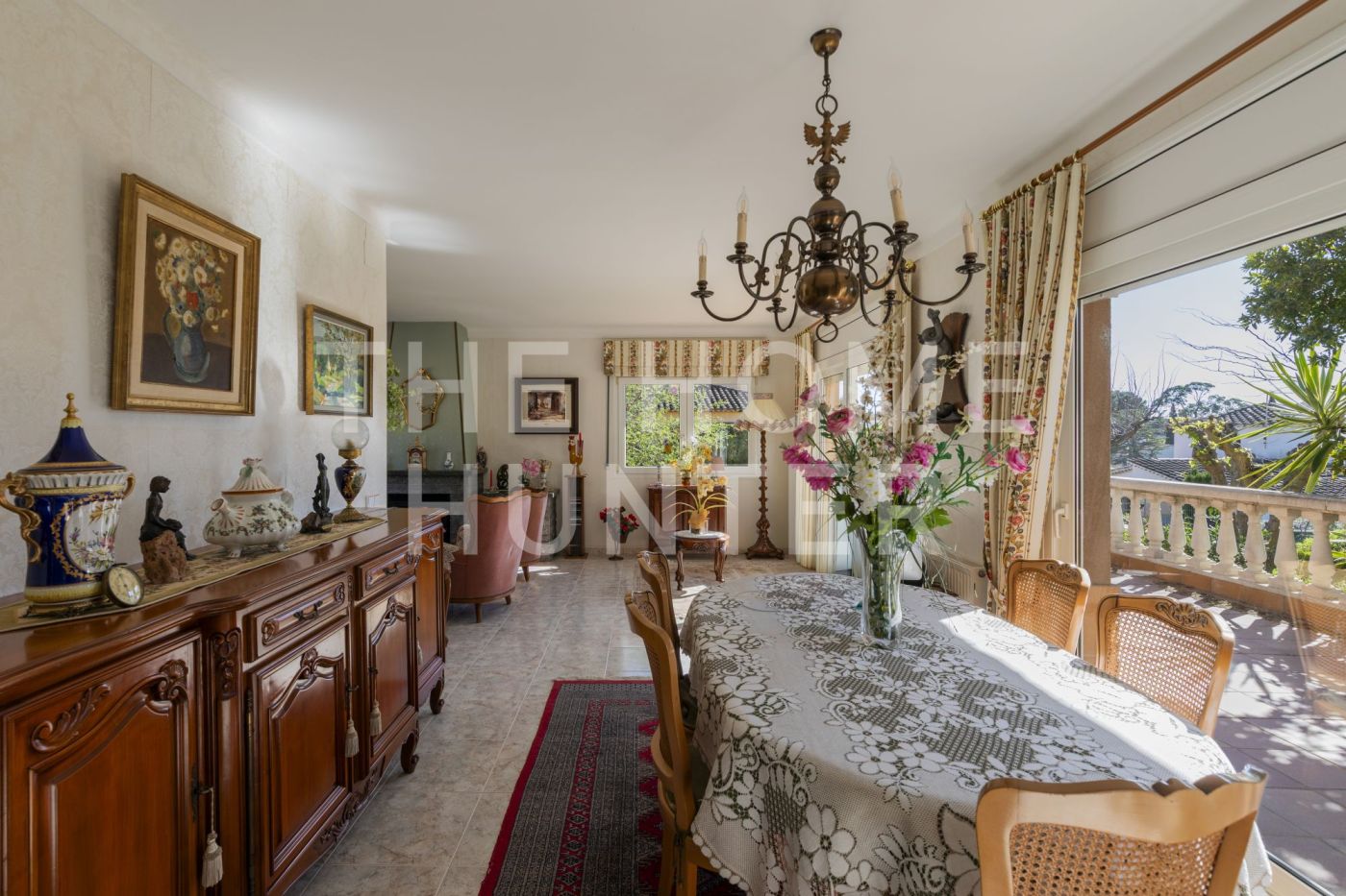 Esta casa de 312m² repercutidos se encuentra en una parcela de 949m² y tiene tres plantas. En la principal hay amplio salón-comedor con chimenea y salida a terraza de 30m², cocina office equipada, dos dormitorios dobles con vistas al jardín, un baño completo, un aseo y armarios empotrados. En la primera planta se encuentra la master suite con baño y un pequeño salón con salida a terraza con vistas. En la planta inferior hay un dormitorio con salida al jardín y una sala polivalente con un baño completo. Tiene ventanas de climalit doble, un garaje tipo box para dos coches y una zona comunitaria con piscina y pista de tenis. La finca es de 1978.
