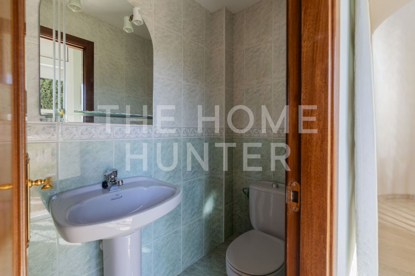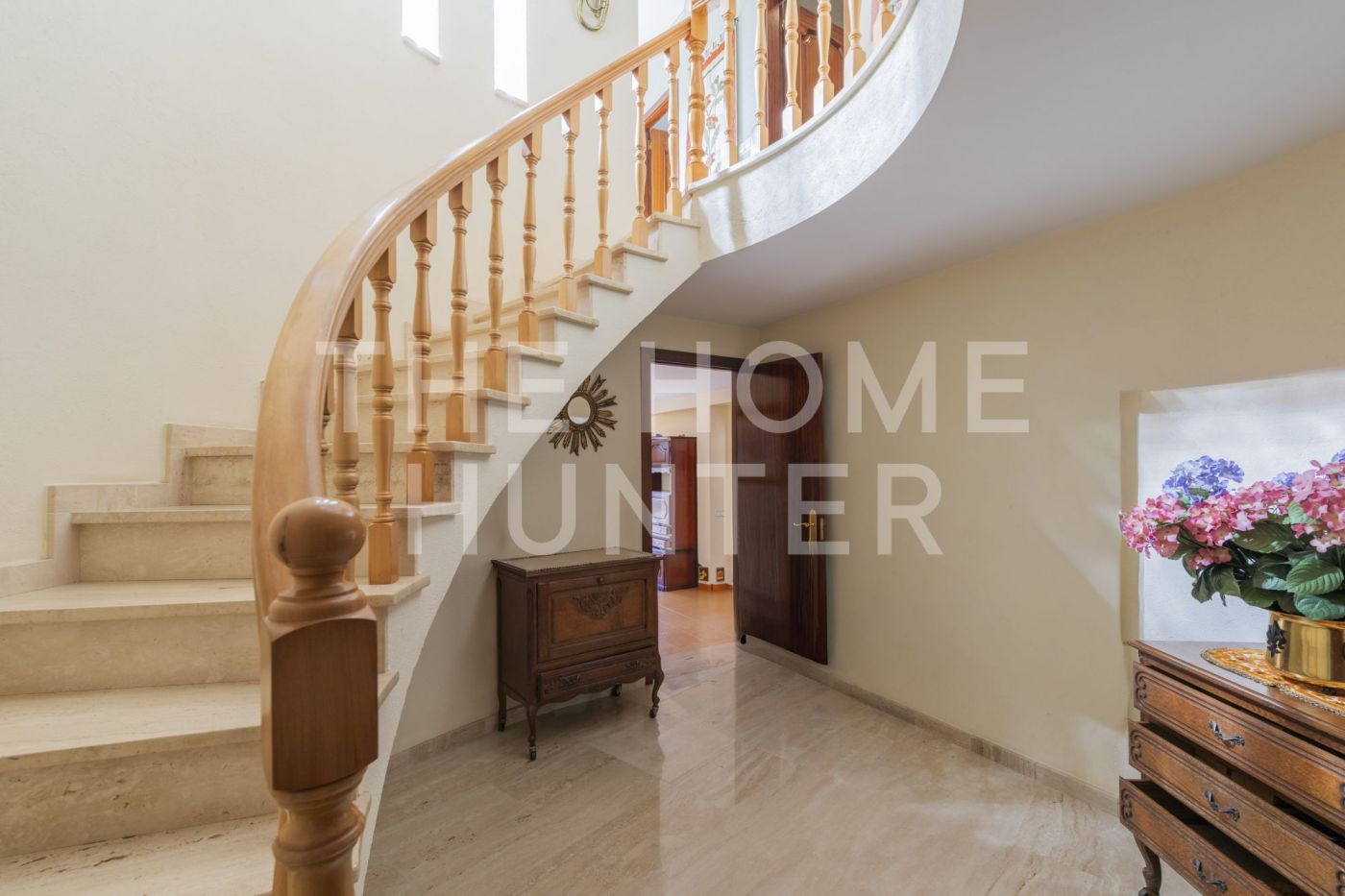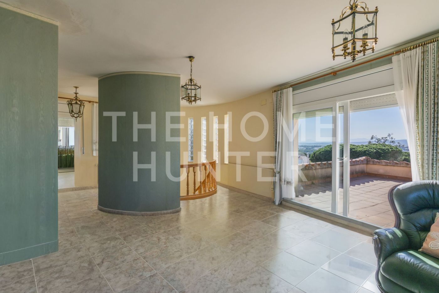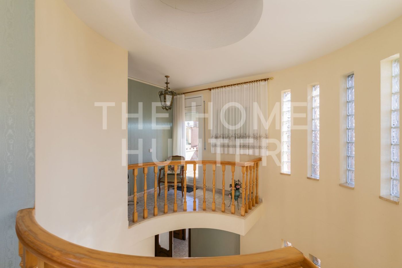 Esta casa de 312m² repercutidos se encuentra en una parcela de 949m² y tiene tres plantas. En la principal hay amplio salón-comedor con chimenea y salida a terraza de 30m², cocina office equipada, dos dormitorios dobles con vistas al jardín, un baño completo, un aseo y armarios empotrados. En la primera planta se encuentra la master suite con baño y un pequeño salón con salida a terraza con vistas. En la planta inferior hay un dormitorio con salida al jardín y una sala polivalente con un baño completo. Tiene ventanas de climalit doble, un garaje tipo box para dos coches y una zona comunitaria con piscina y pista de tenis. La finca es de 1978.
