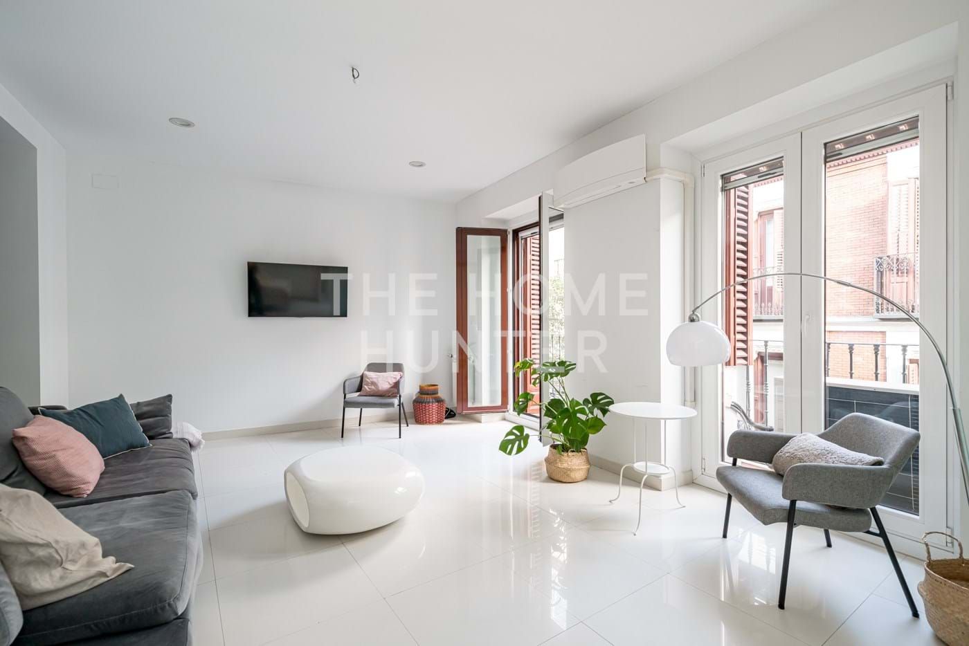 Este piso reformado de diseño tiene 94 m2 y se encuentra en la calle Relatores, en pleno centro de Madrid. Es una tercera planta y cuenta con tres balcones que dan a a la calle, una cocina Santos independiente semi-abierta con electrodomésticos de alta gama, un salón amplio (donde encontramos dos de los balcones) y dos habitaciones (una de ellas con el tercer balcón). También cuenta con un baño, muy grande y espacioso. El piso tiene ventanas y puertas de balcones con doble acristalamiento así como mosquiteras, aunque se han conservado las contraventanas de madera originales en los balcones. La reforma dejó las vigas originales de madera vistas, así como instaló aire acondicionado y calefacción gas natural individual. El edificio histórico, de 1905, es muy bonito y cuenta con ascensor. El piso tiene orientación sur.