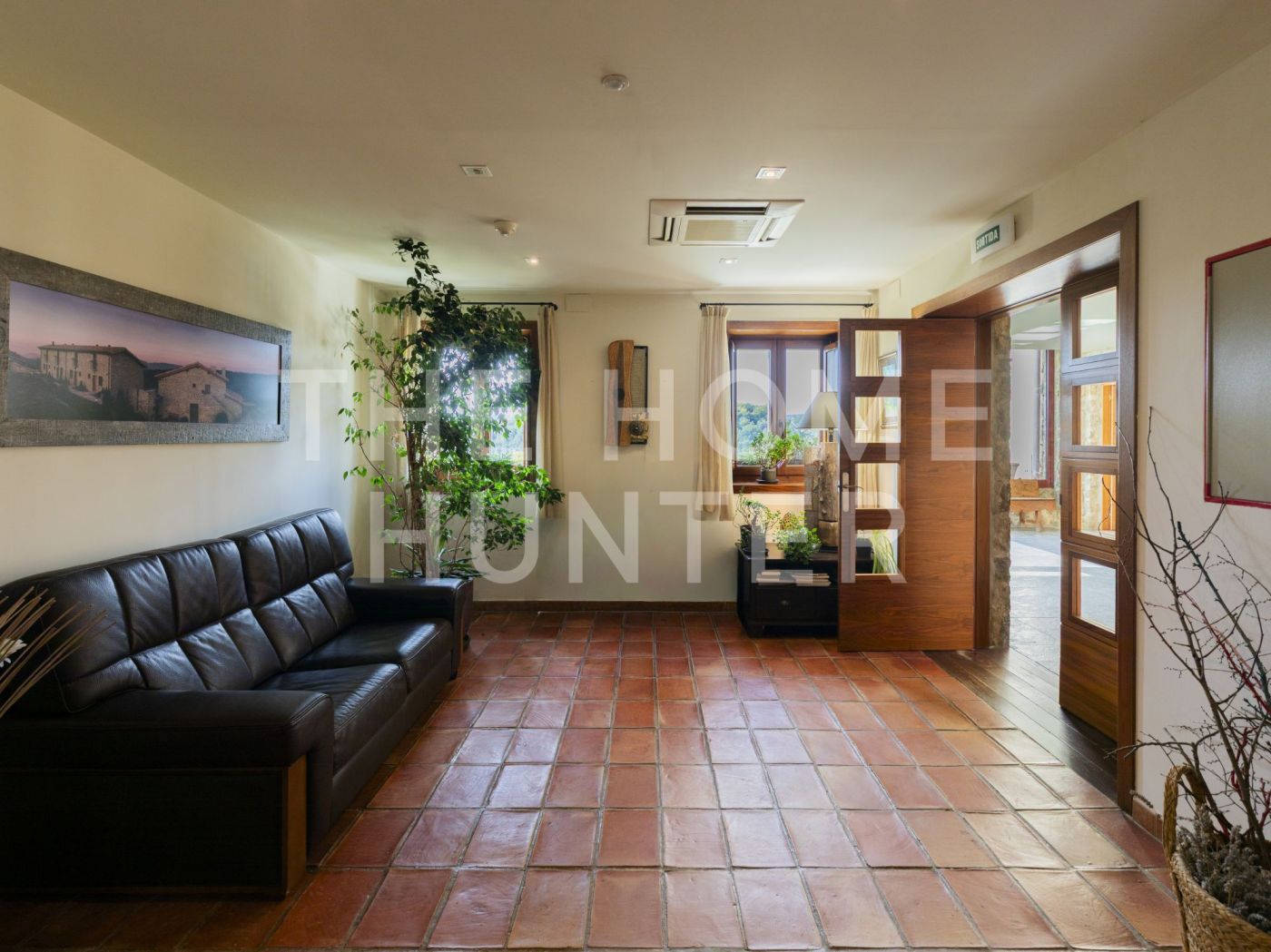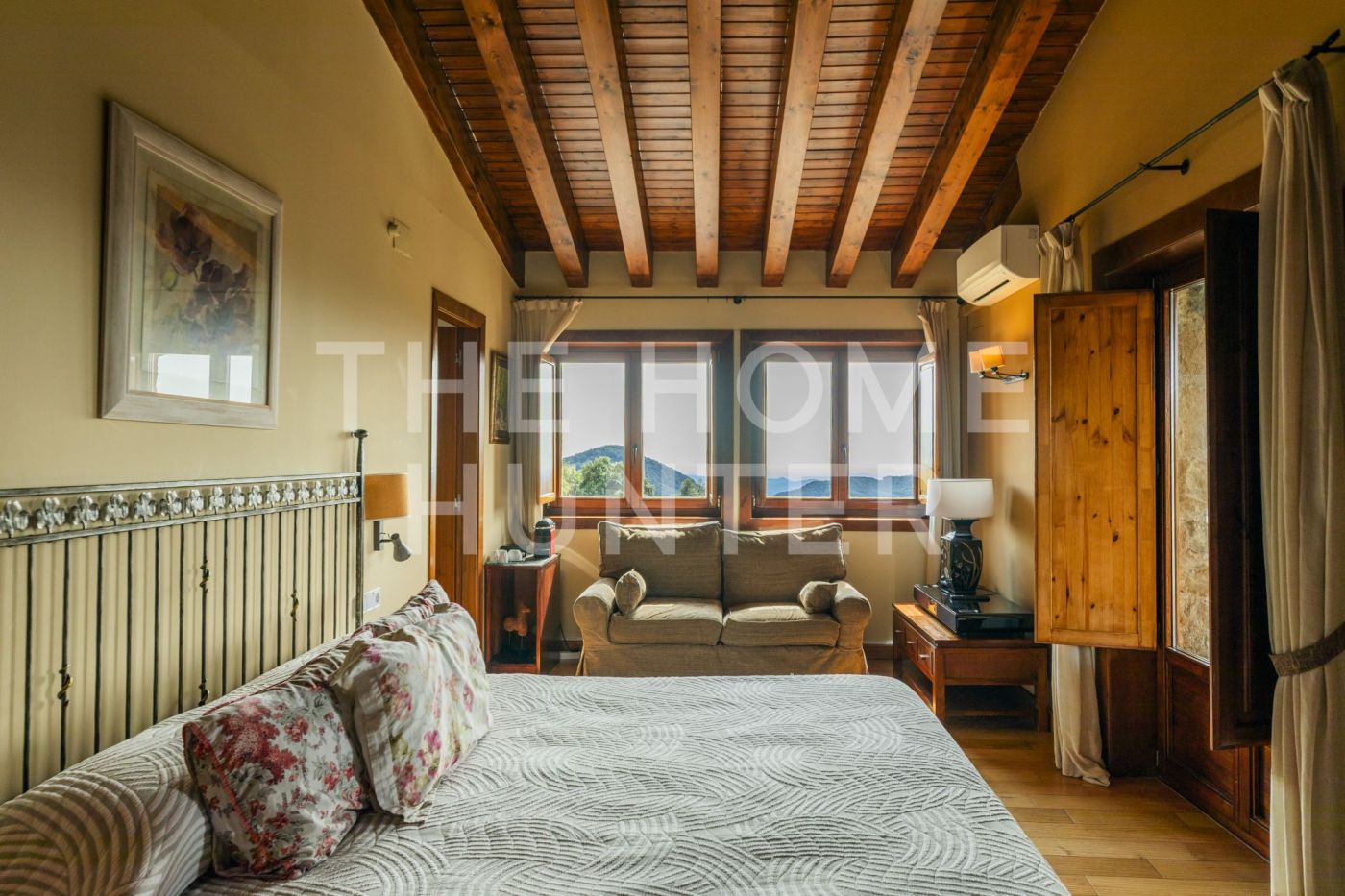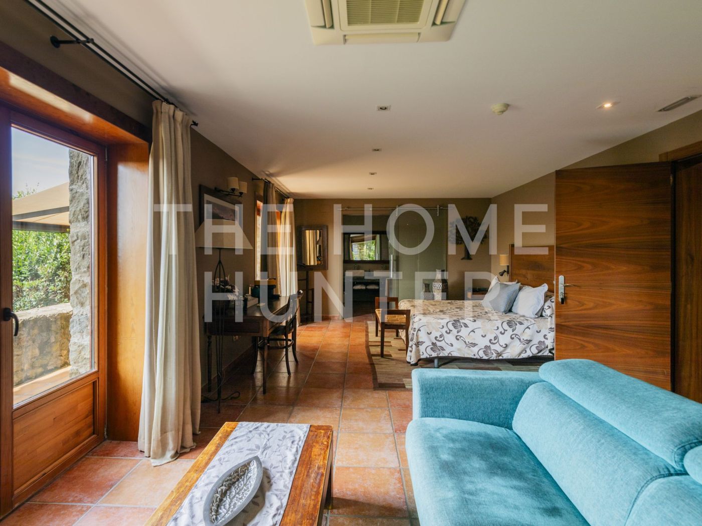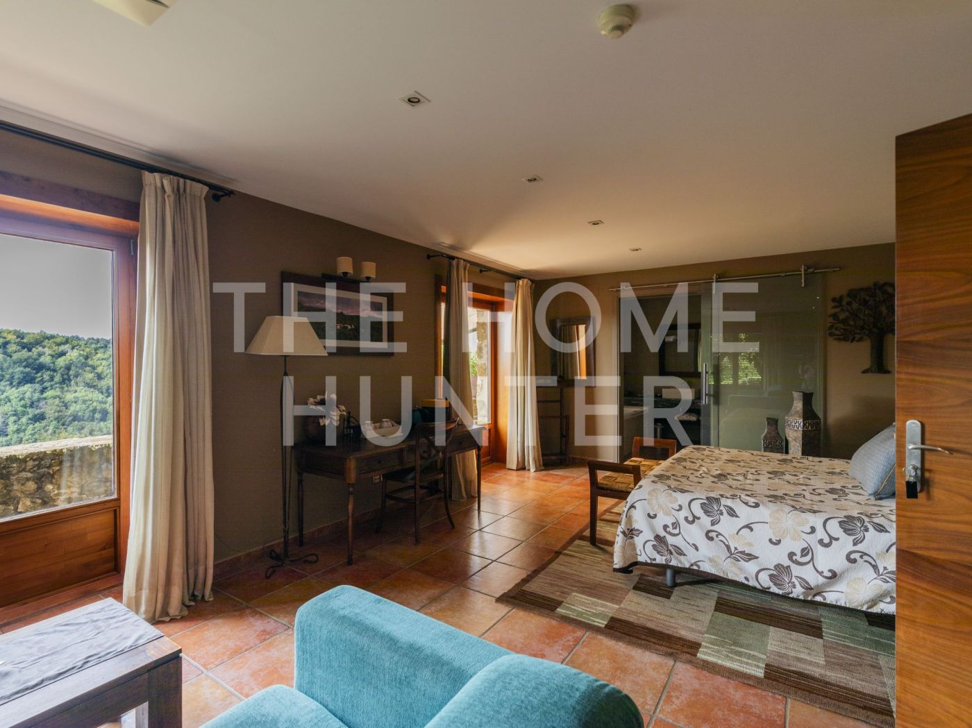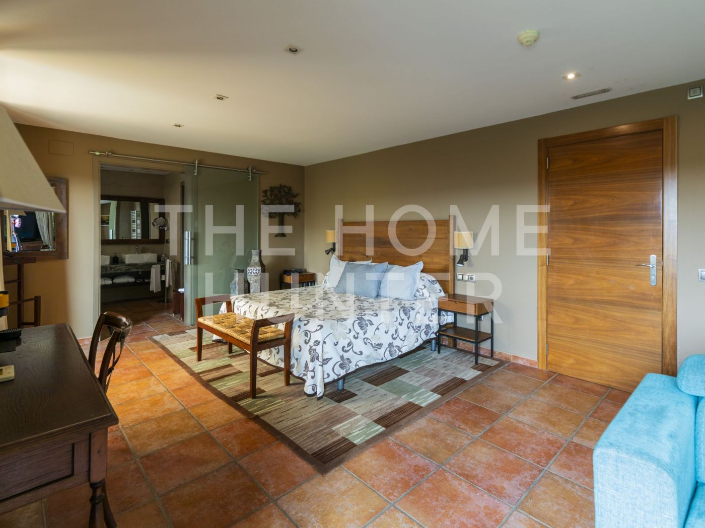 Esta masía, dividida en tres plantas con 2.400 m² construidos y 350.000 m² de superficie de parcela, dispone de 13 habitaciones y 16 baños. En la planta baja se encuentra la cocina, el comedor/restaurante, una súper bodega y un salón privado con unas vistas espectaculares. En la primera planta se puede admirar un precioso salón de piano junto a la recepción, dos suites con baños completos, además de los dos aseos que hay en la planta. También se encuentra un despacho, el cuarto de máquinas y siete habitaciones, todo esto, obviamente, con una amplia terraza donde disfrutarás de las vistas. Por último, en la segunda y última planta se encuentra otra sala de estar espaciosa junto con tres habitaciones y dos aseos más.
