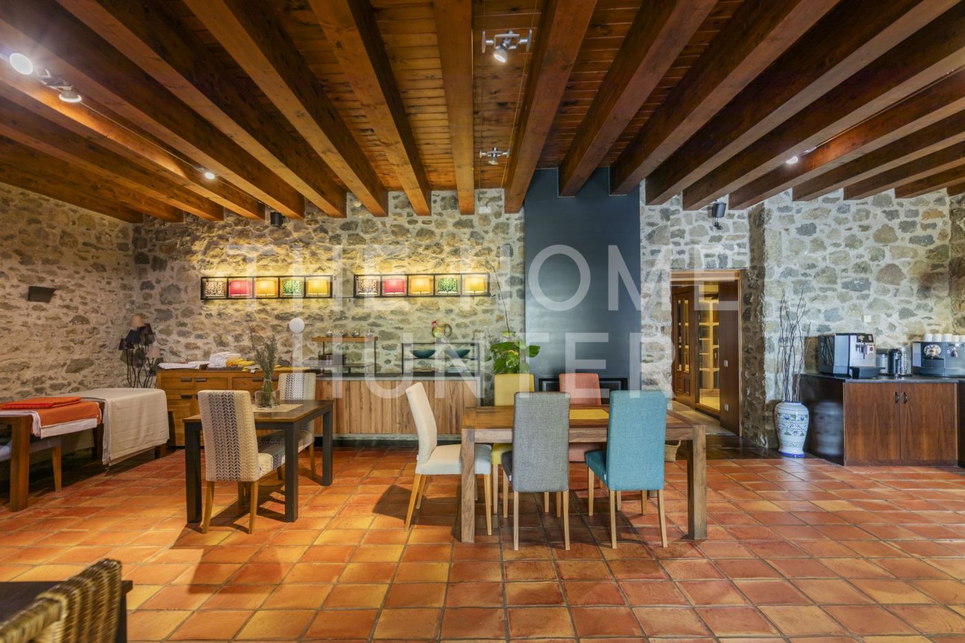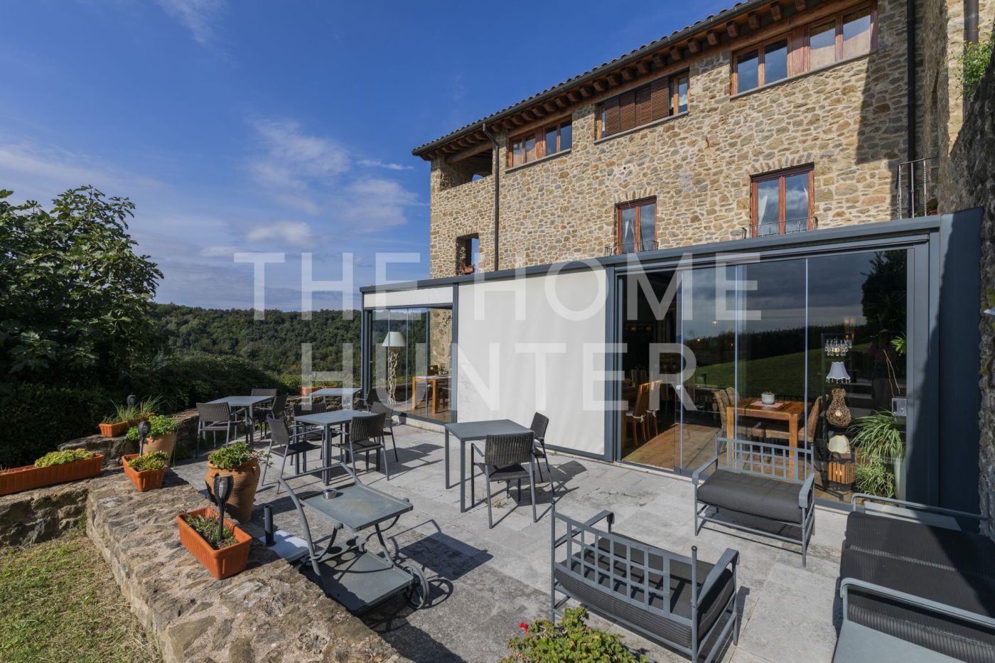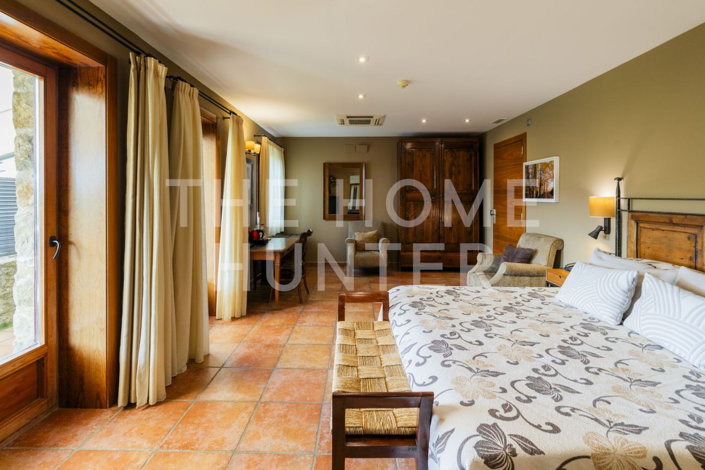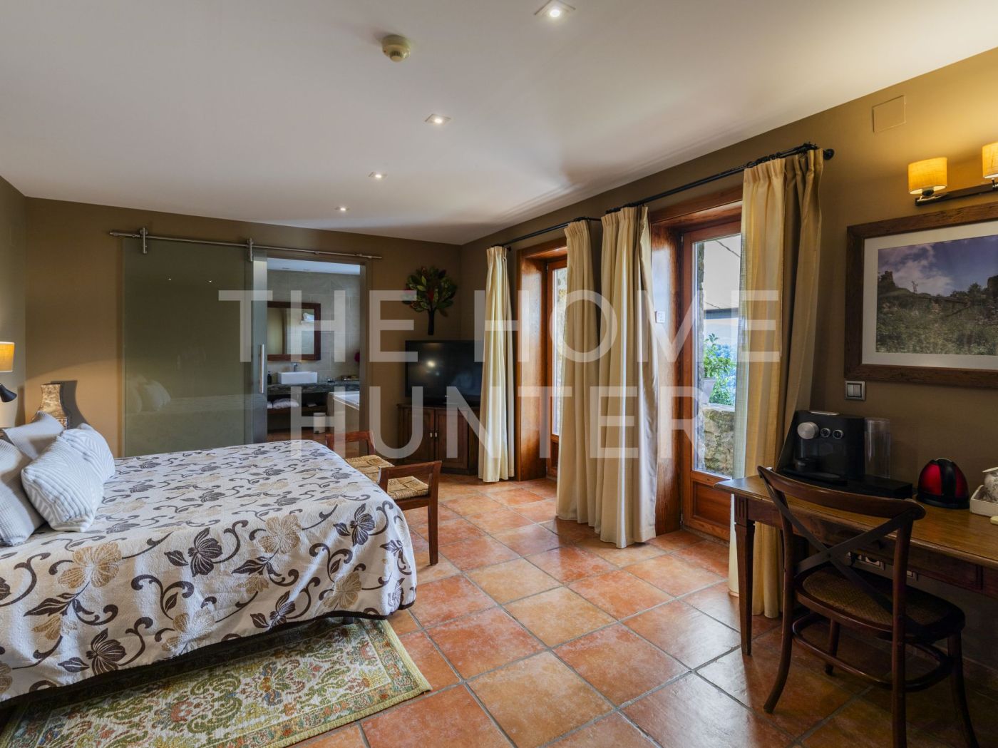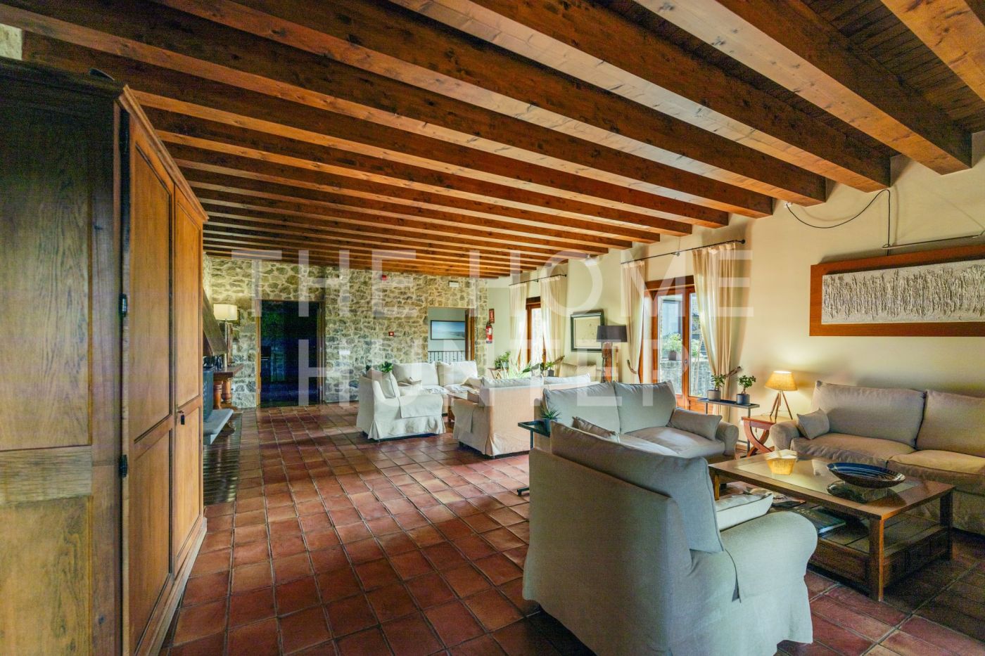 Esta masía, dividida en tres plantas con 2.400 m² construidos y 350.000 m² de superficie de parcela, dispone de 13 habitaciones y 16 baños. En la planta baja se encuentra la cocina, el comedor/restaurante, una súper bodega y un salón privado con unas vistas espectaculares. En la primera planta se puede admirar un precioso salón de piano junto a la recepción, dos suites con baños completos, además de los dos aseos que hay en la planta. También se encuentra un despacho, el cuarto de máquinas y siete habitaciones, todo esto, obviamente, con una amplia terraza donde disfrutarás de las vistas. Por último, en la segunda y última planta se encuentra otra sala de estar espaciosa junto con tres habitaciones y dos aseos más.