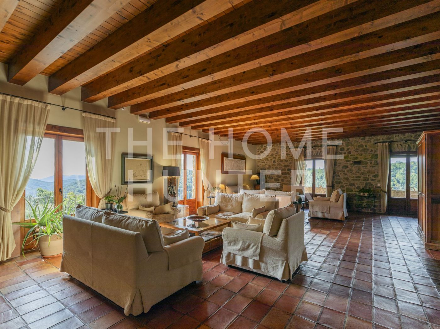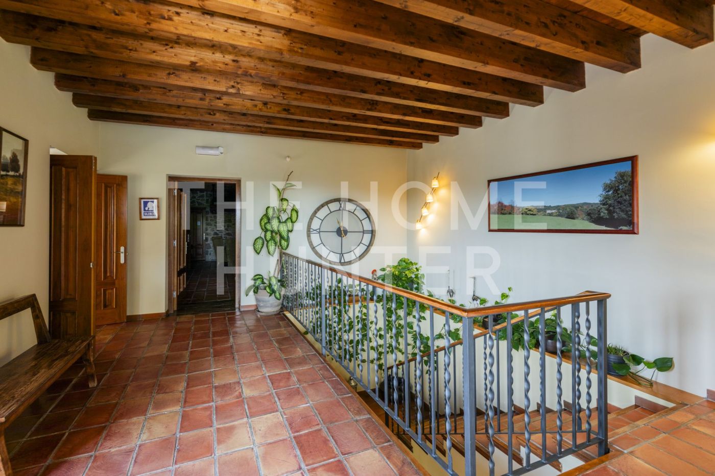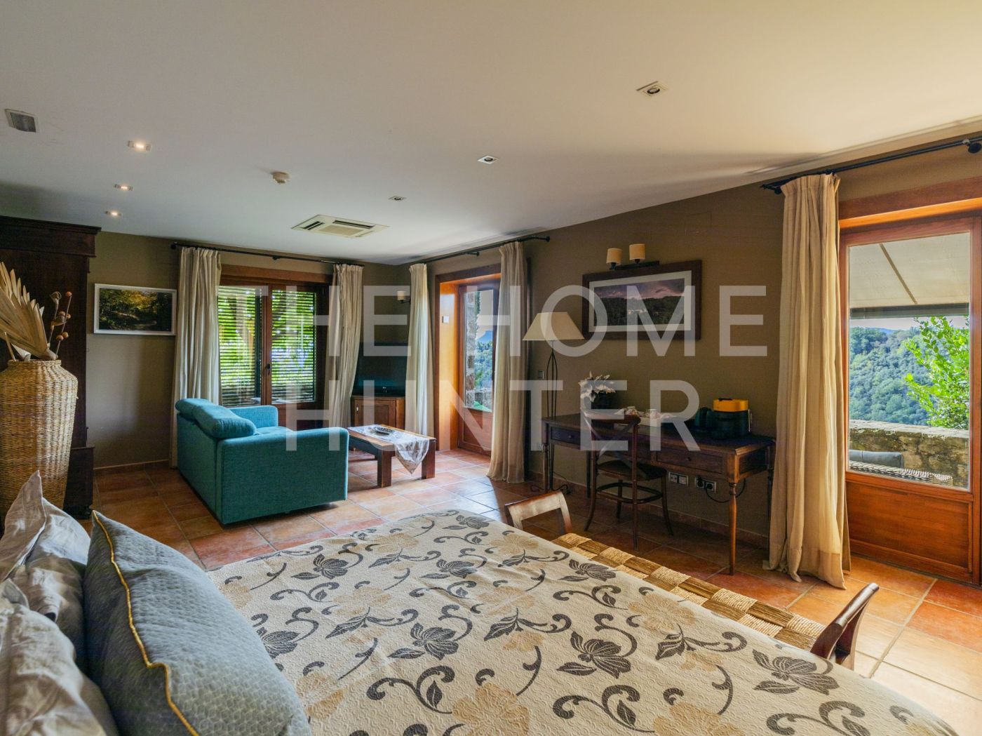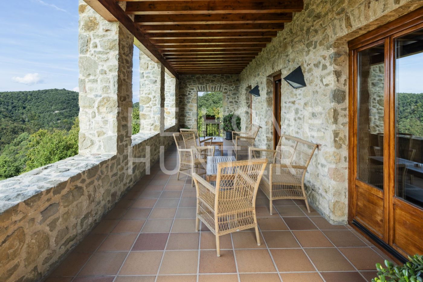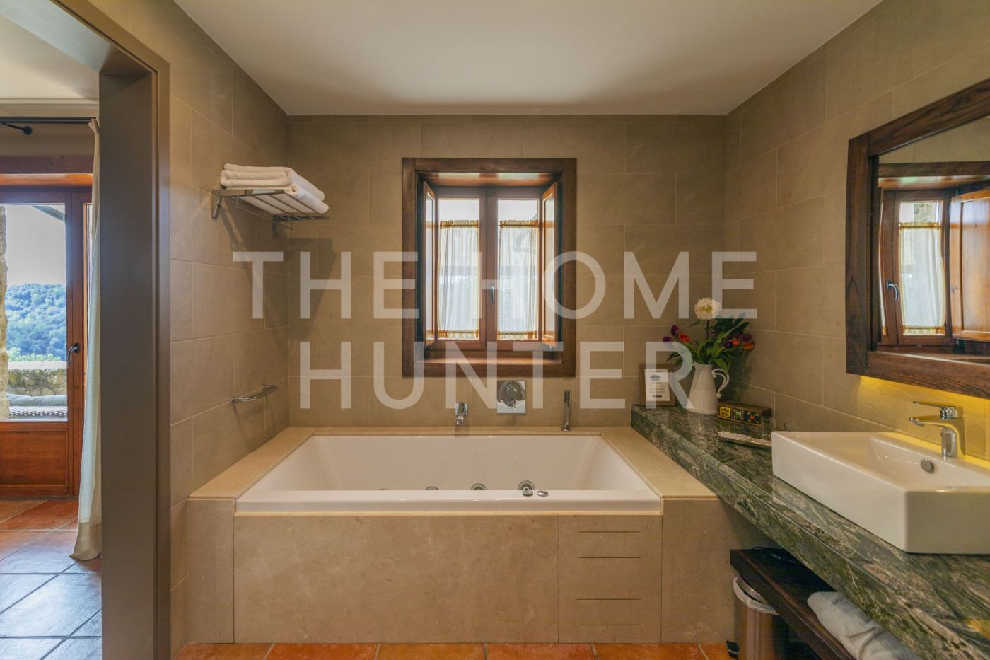 Esta masía, dividida en tres plantas con 2.400 m² construidos y 350.000 m² de superficie de parcela, dispone de 13 habitaciones y 16 baños. En la planta baja se encuentra la cocina, el comedor/restaurante, una súper bodega y un salón privado con unas vistas espectaculares. En la primera planta se puede admirar un precioso salón de piano junto a la recepción, dos suites con baños completos, además de los dos aseos que hay en la planta. También se encuentra un despacho, el cuarto de máquinas y siete habitaciones, todo esto, obviamente, con una amplia terraza donde disfrutarás de las vistas. Por último, en la segunda y última planta se encuentra otra sala de estar espaciosa junto con tres habitaciones y dos aseos más.