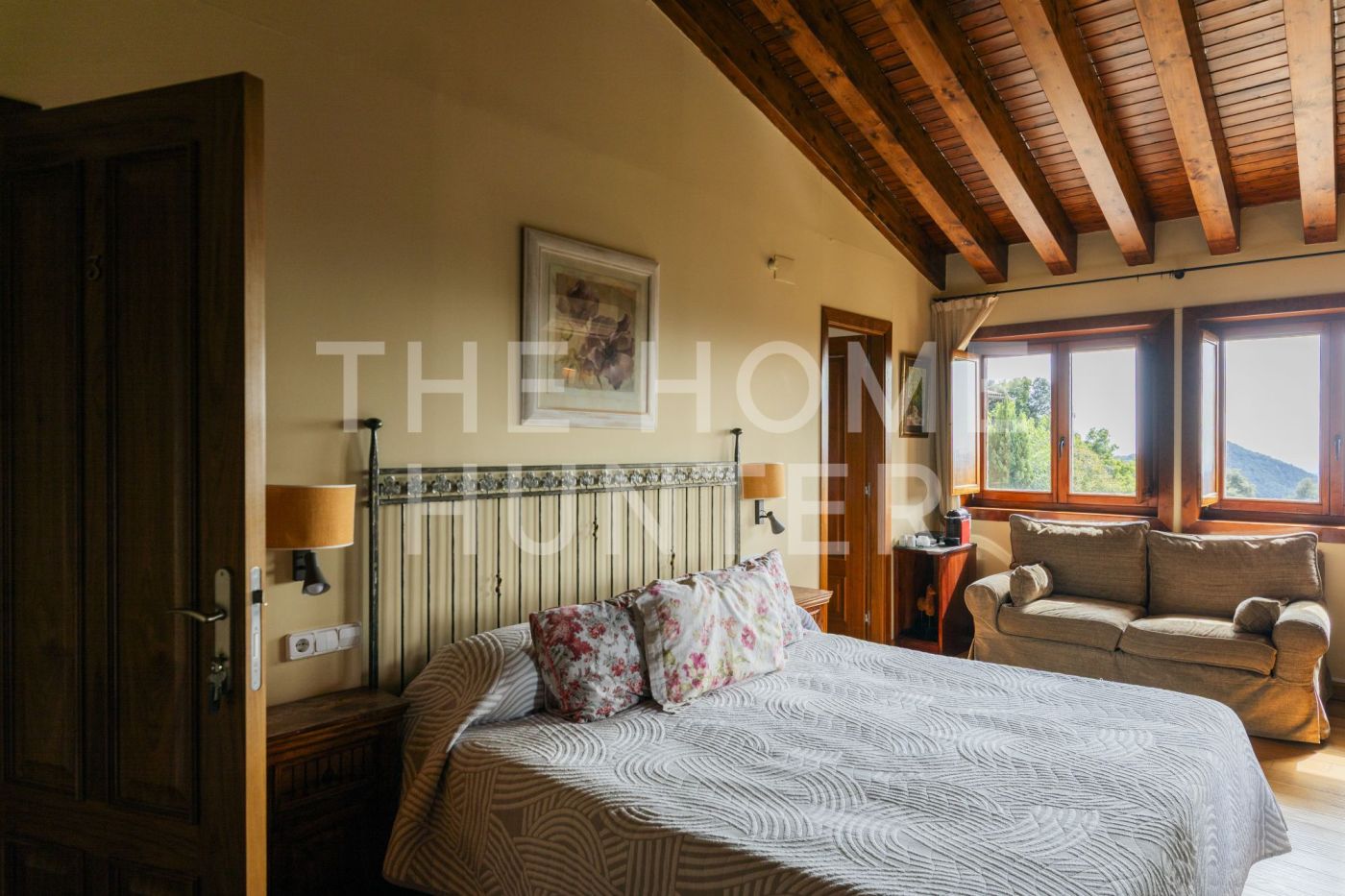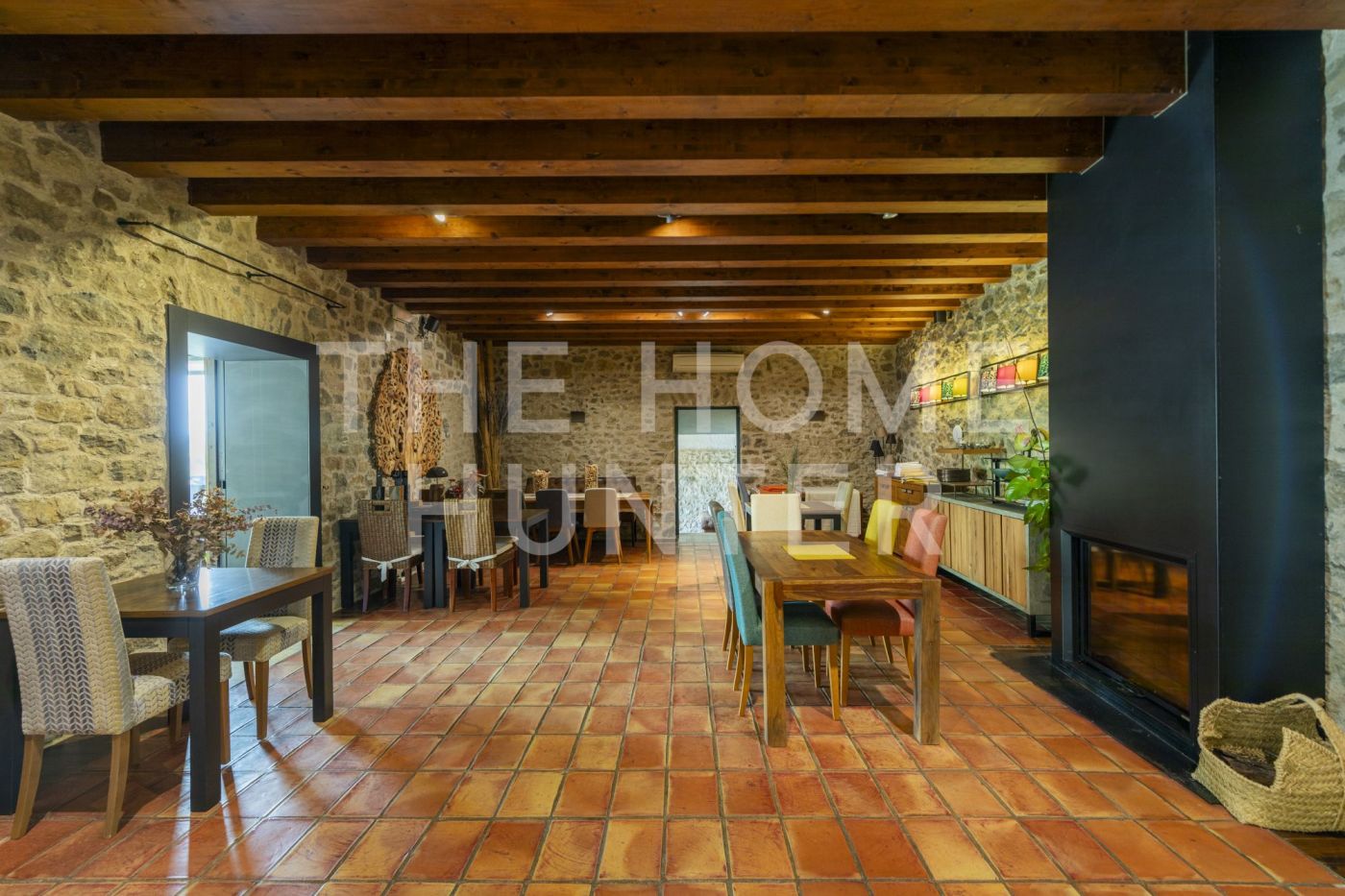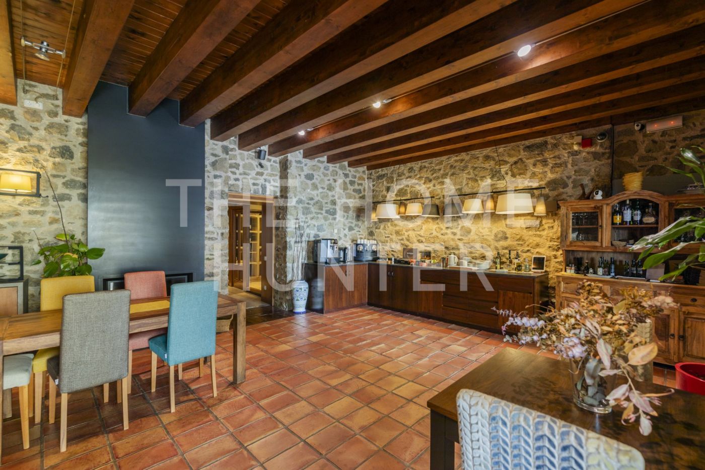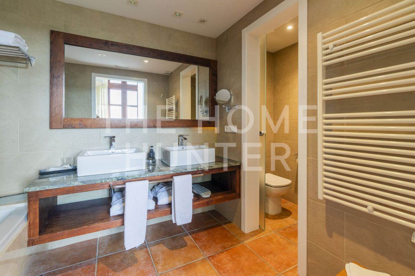 Esta masía, dividida en tres plantas con 2.400 m² construidos y 350.000 m² de superficie de parcela, dispone de 13 habitaciones y 16 baños. En la planta baja se encuentra la cocina, el comedor/restaurante, una súper bodega y un salón privado con unas vistas espectaculares. En la primera planta se puede admirar un precioso salón de piano junto a la recepción, dos suites con baños completos, además de los dos aseos que hay en la planta. También se encuentra un despacho, el cuarto de máquinas y siete habitaciones, todo esto, obviamente, con una amplia terraza donde disfrutarás de las vistas. Por último, en la segunda y última planta se encuentra otra sala de estar espaciosa junto con tres habitaciones y dos aseos más.