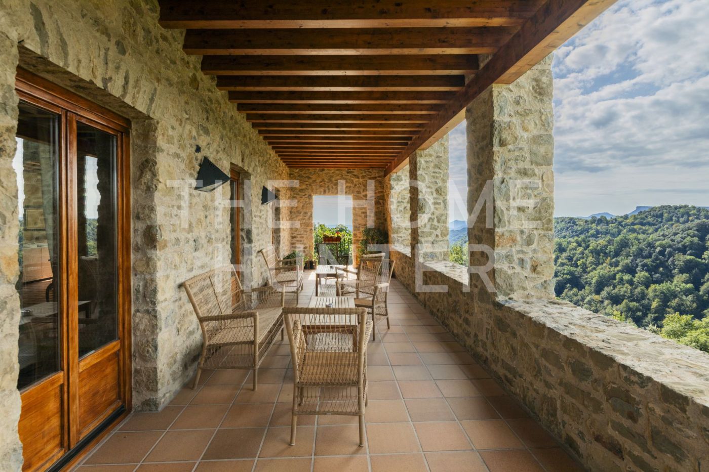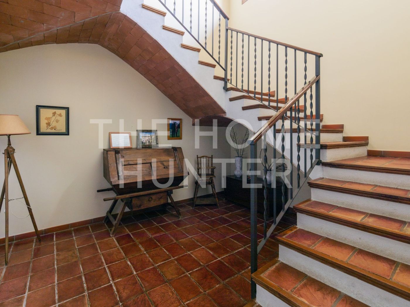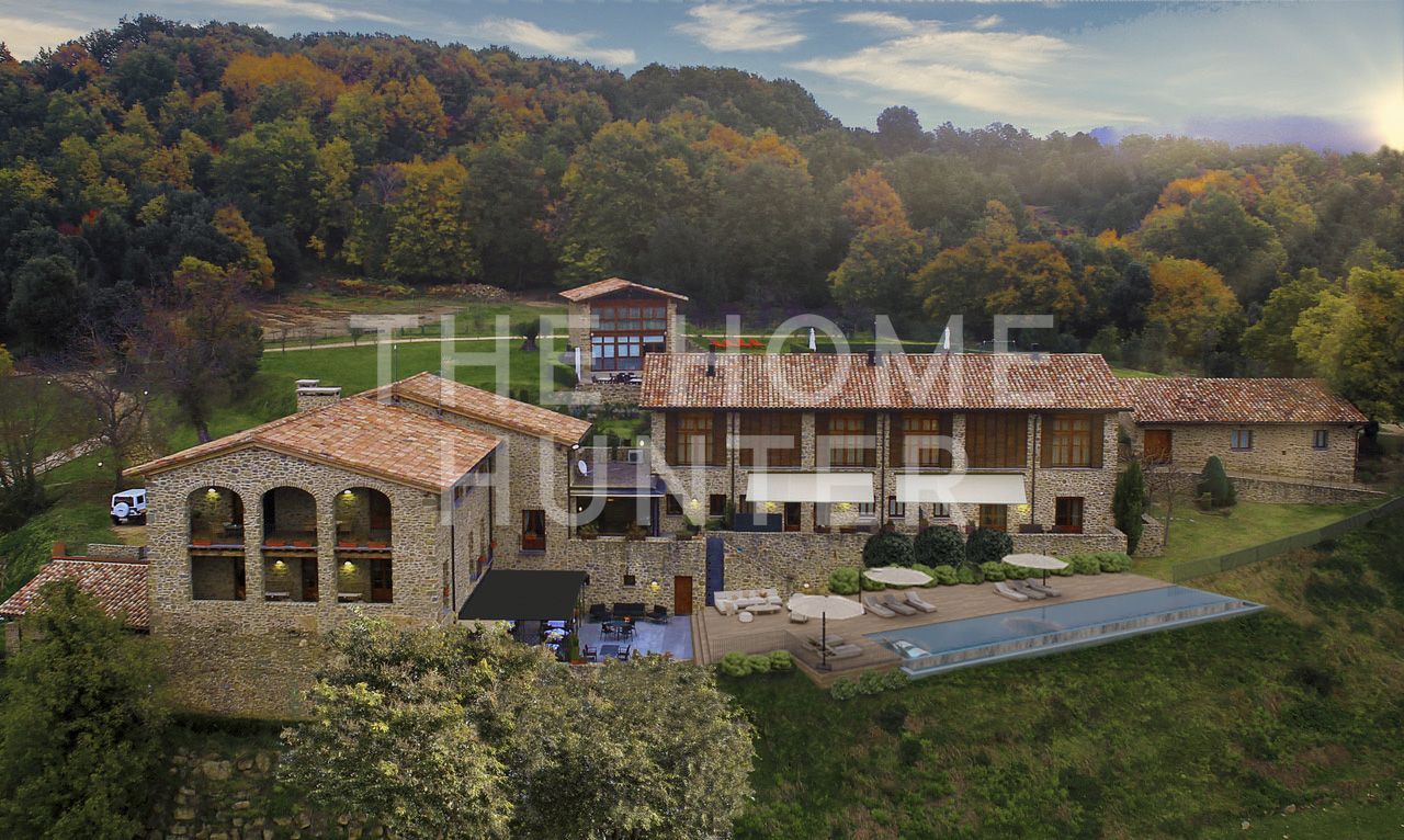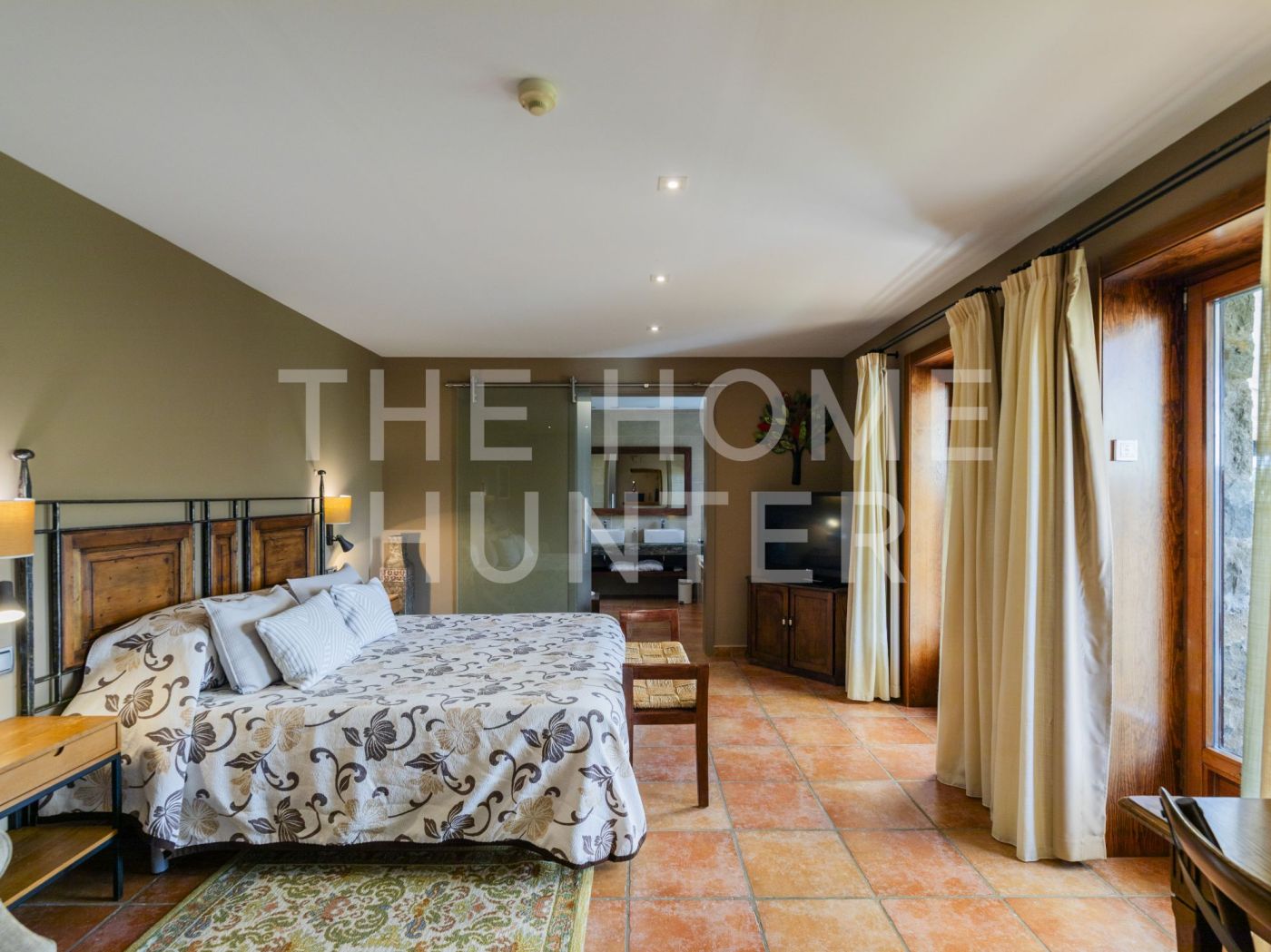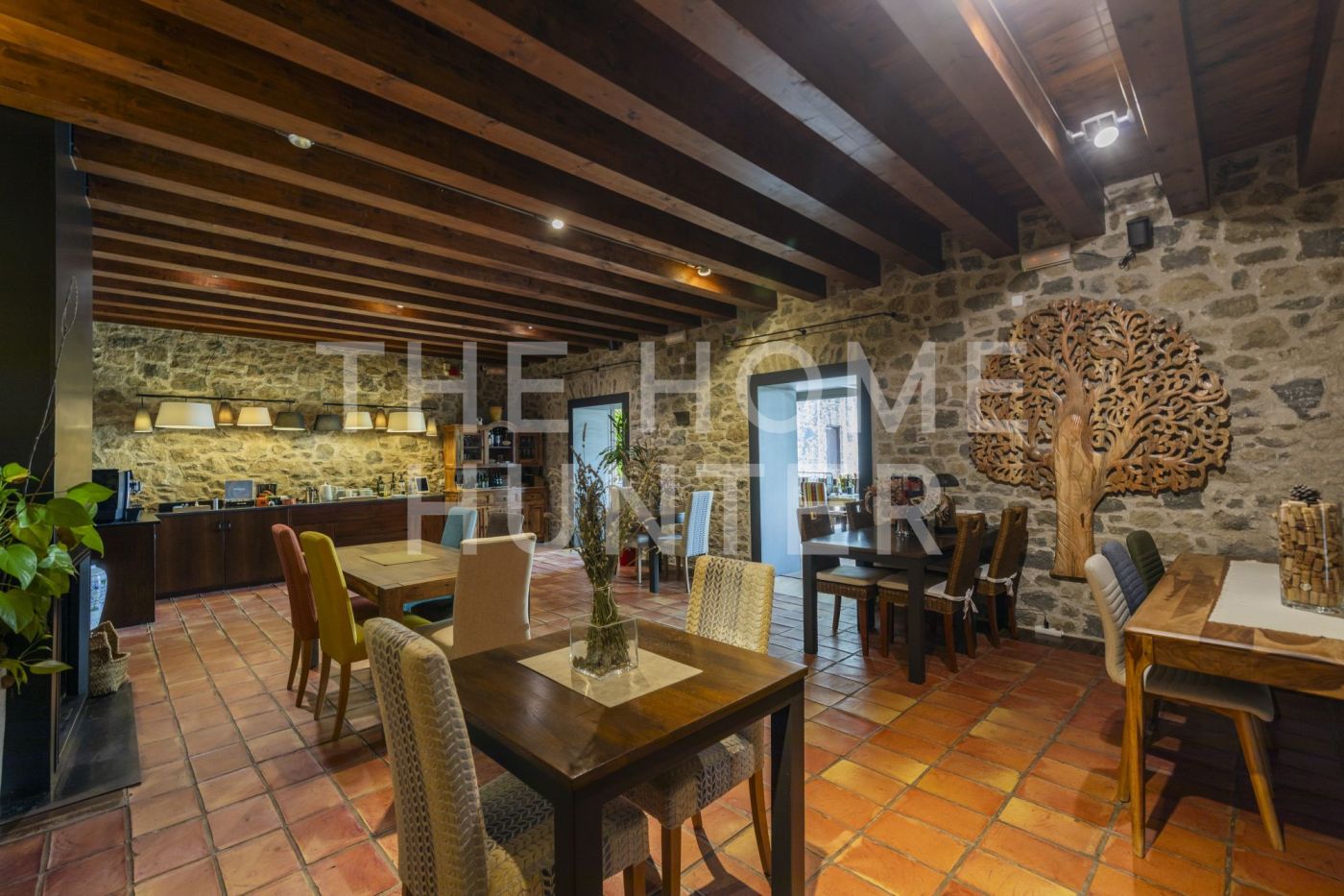 Esta masía, dividida en tres plantas con 2.400 m² construidos y 350.000 m² de superficie de parcela, dispone de 13 habitaciones y 16 baños. En la planta baja se encuentra la cocina, el comedor/restaurante, una súper bodega y un salón privado con unas vistas espectaculares. En la primera planta se puede admirar un precioso salón de piano junto a la recepción, dos suites con baños completos, además de los dos aseos que hay en la planta. También se encuentra un despacho, el cuarto de máquinas y siete habitaciones, todo esto, obviamente, con una amplia terraza donde disfrutarás de las vistas. Por último, en la segunda y última planta se encuentra otra sala de estar espaciosa junto con tres habitaciones y dos aseos más.