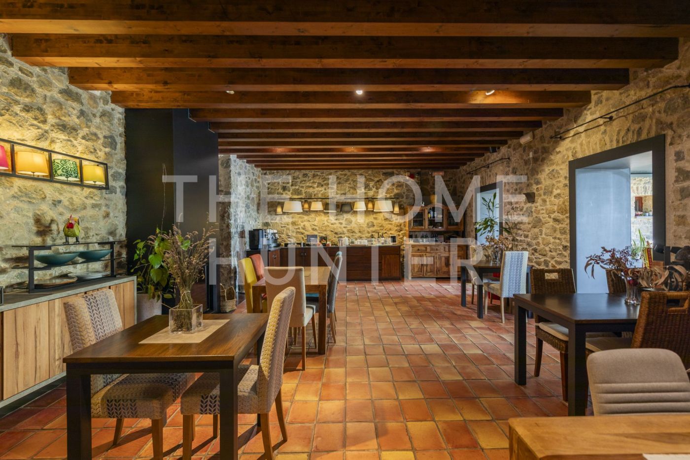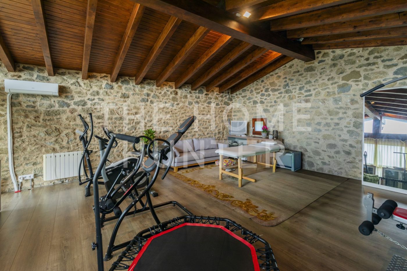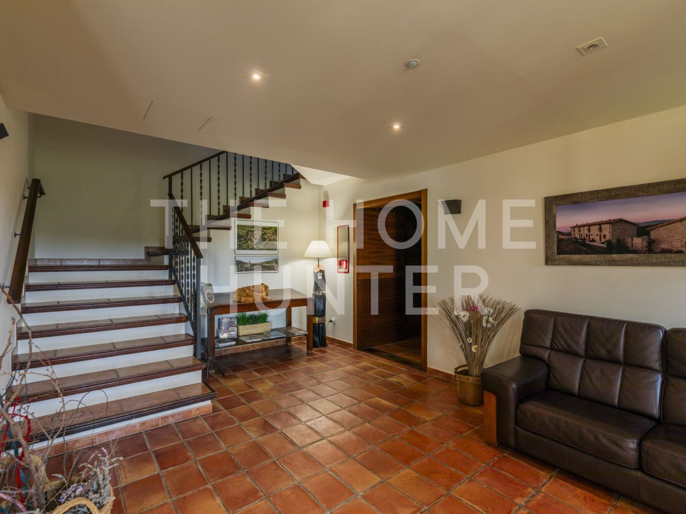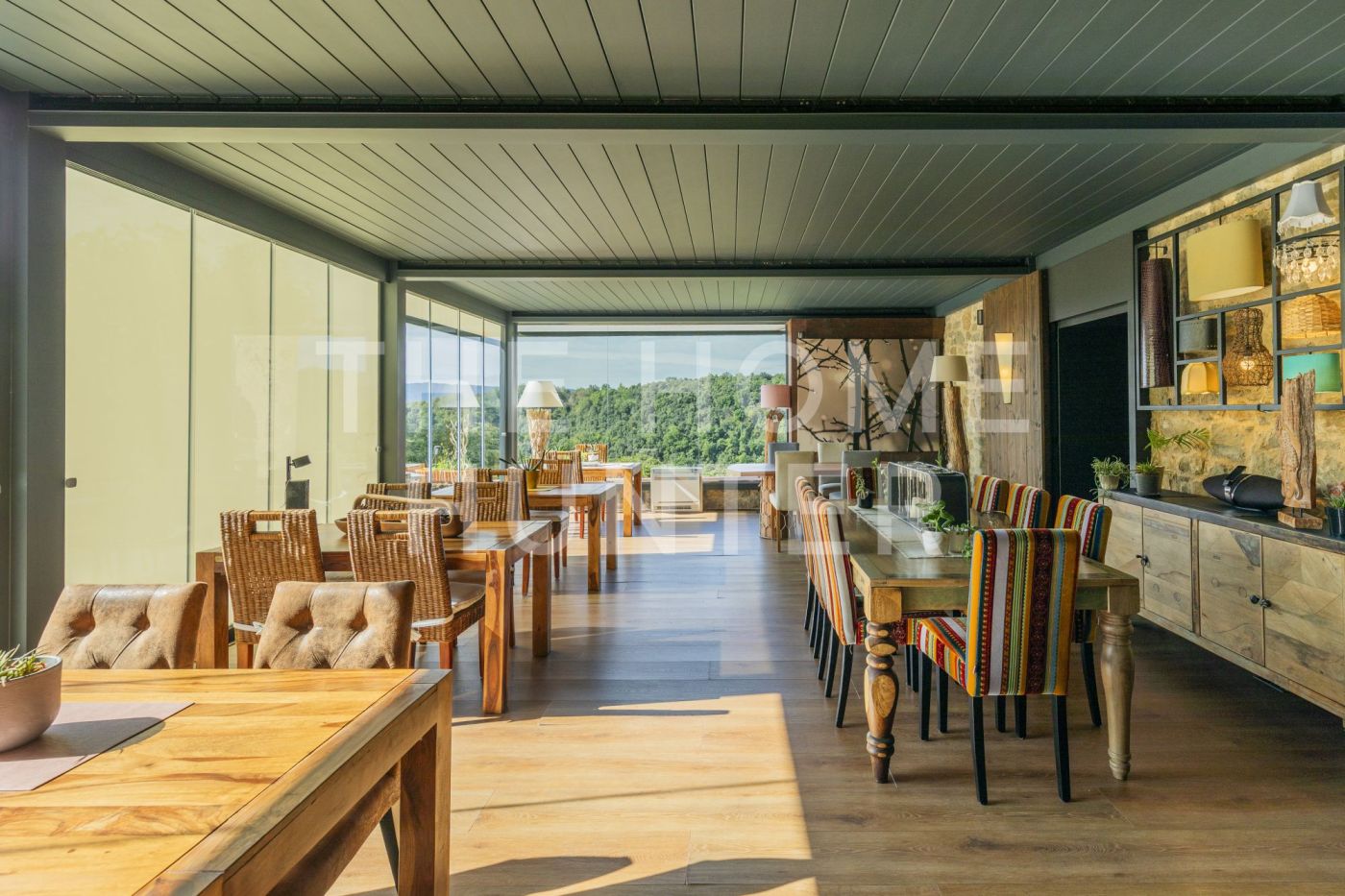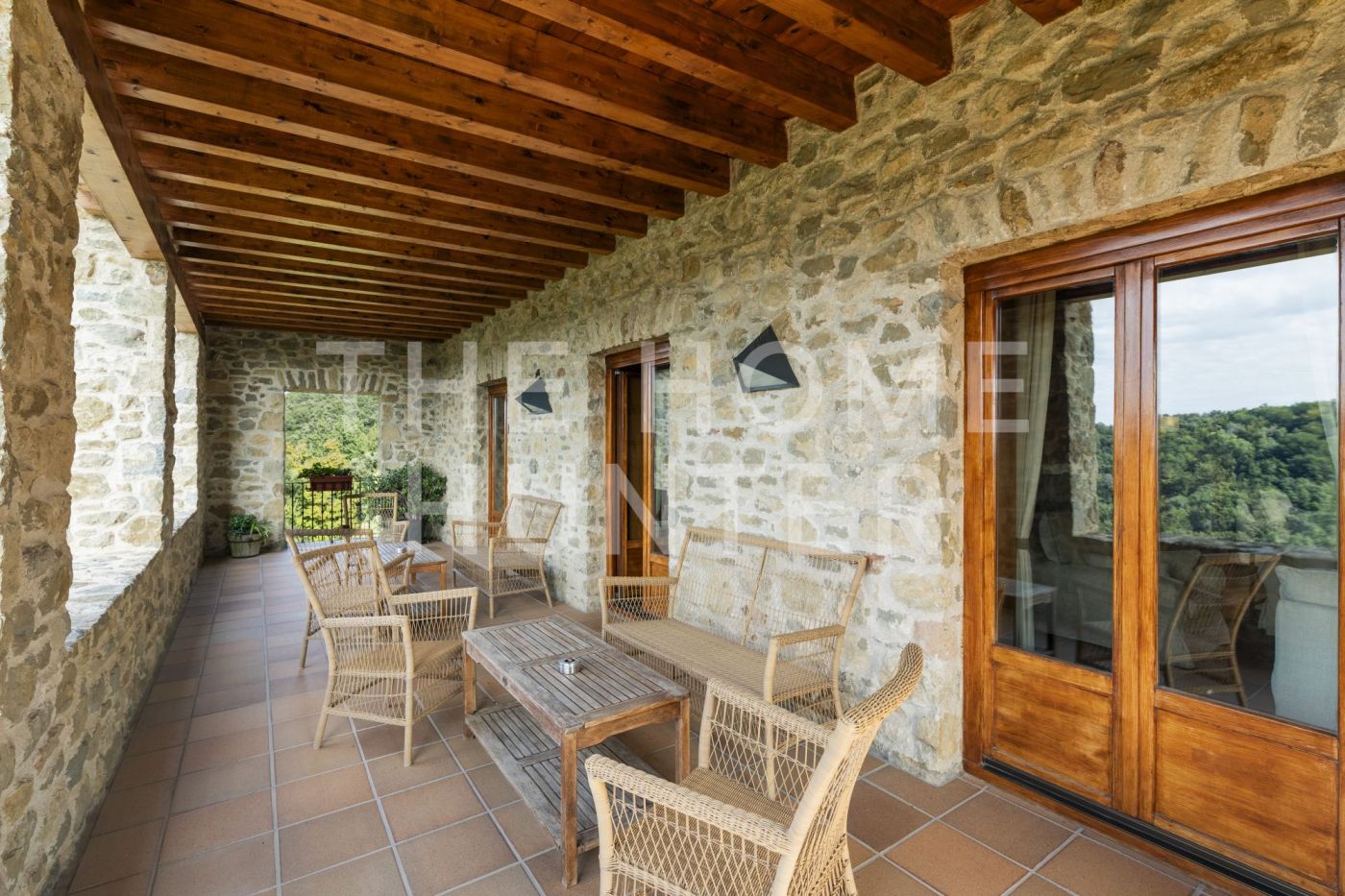 Esta masía, dividida en tres plantas con 2.400 m² construidos y 350.000 m² de superficie de parcela, dispone de 13 habitaciones y 16 baños. En la planta baja se encuentra la cocina, el comedor/restaurante, una súper bodega y un salón privado con unas vistas espectaculares. En la primera planta se puede admirar un precioso salón de piano junto a la recepción, dos suites con baños completos, además de los dos aseos que hay en la planta. También se encuentra un despacho, el cuarto de máquinas y siete habitaciones, todo esto, obviamente, con una amplia terraza donde disfrutarás de las vistas. Por último, en la segunda y última planta se encuentra otra sala de estar espaciosa junto con tres habitaciones y dos aseos más.