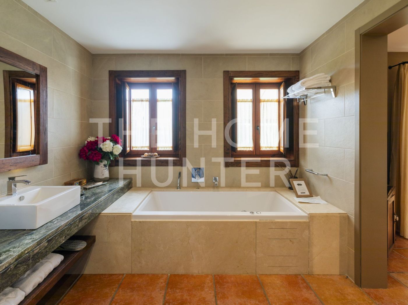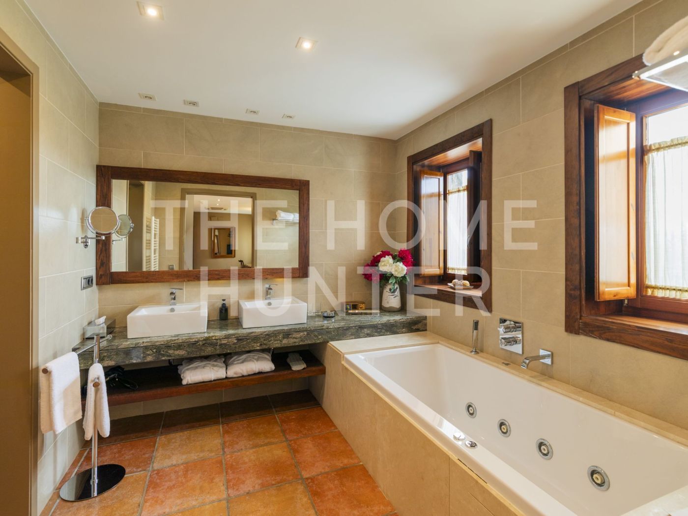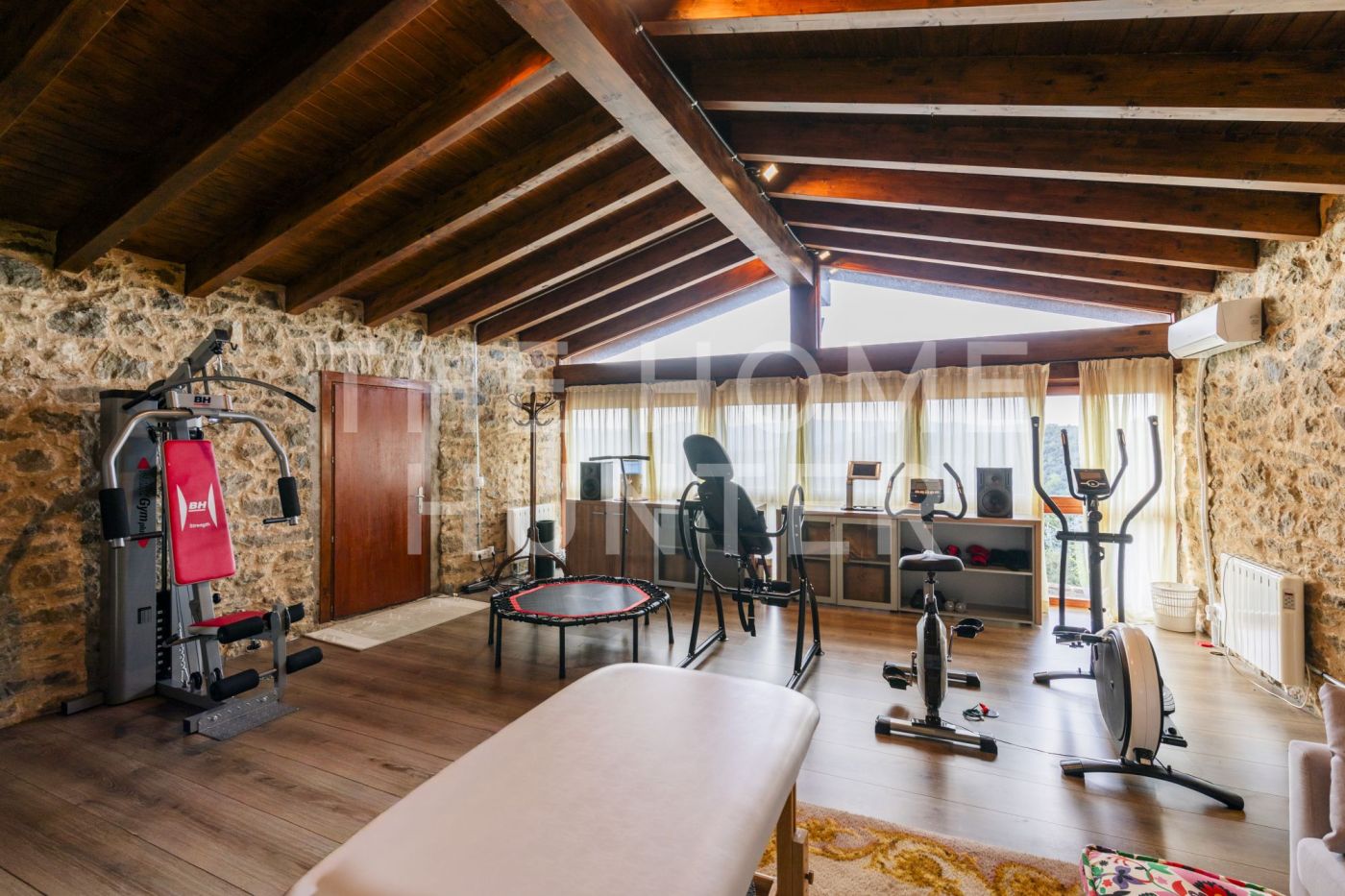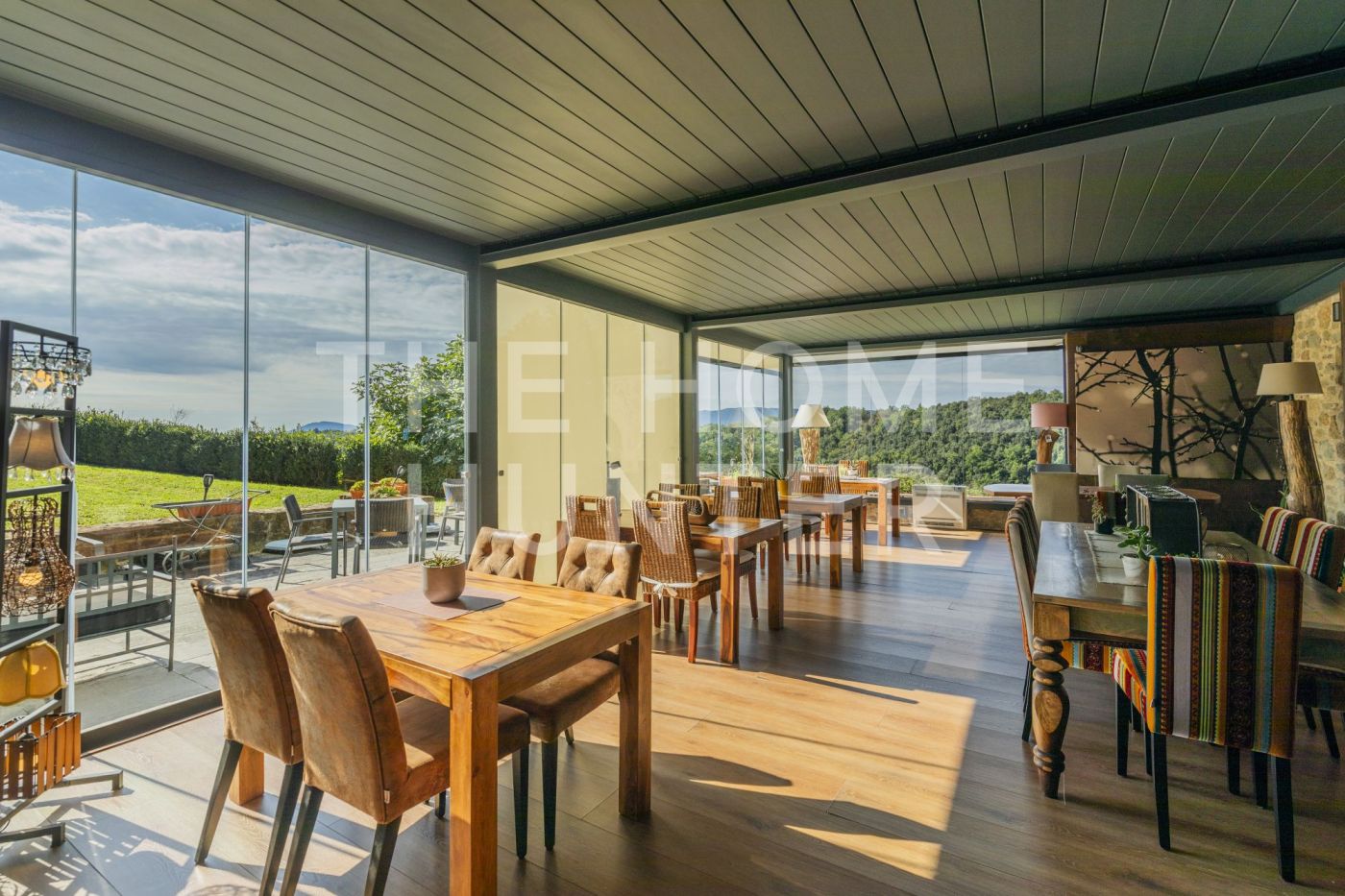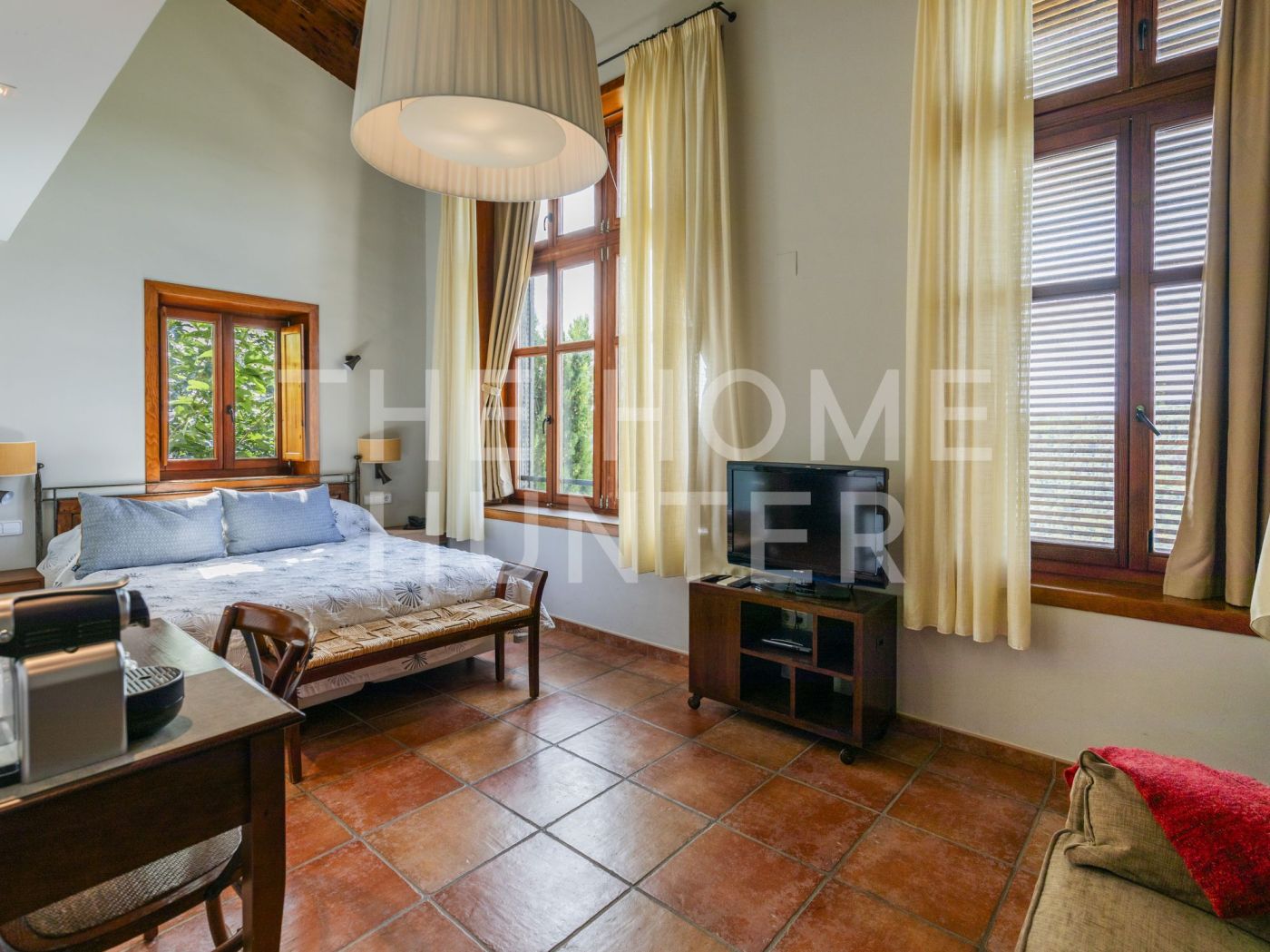 Esta masía, dividida en tres plantas con 2.400 m² construidos y 350.000 m² de superficie de parcela, dispone de 13 habitaciones y 16 baños. En la planta baja se encuentra la cocina, el comedor/restaurante, una súper bodega y un salón privado con unas vistas espectaculares. En la primera planta se puede admirar un precioso salón de piano junto a la recepción, dos suites con baños completos, además de los dos aseos que hay en la planta. También se encuentra un despacho, el cuarto de máquinas y siete habitaciones, todo esto, obviamente, con una amplia terraza donde disfrutarás de las vistas. Por último, en la segunda y última planta se encuentra otra sala de estar espaciosa junto con tres habitaciones y dos aseos más.