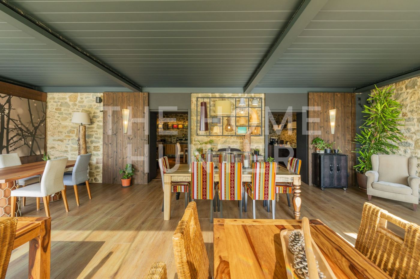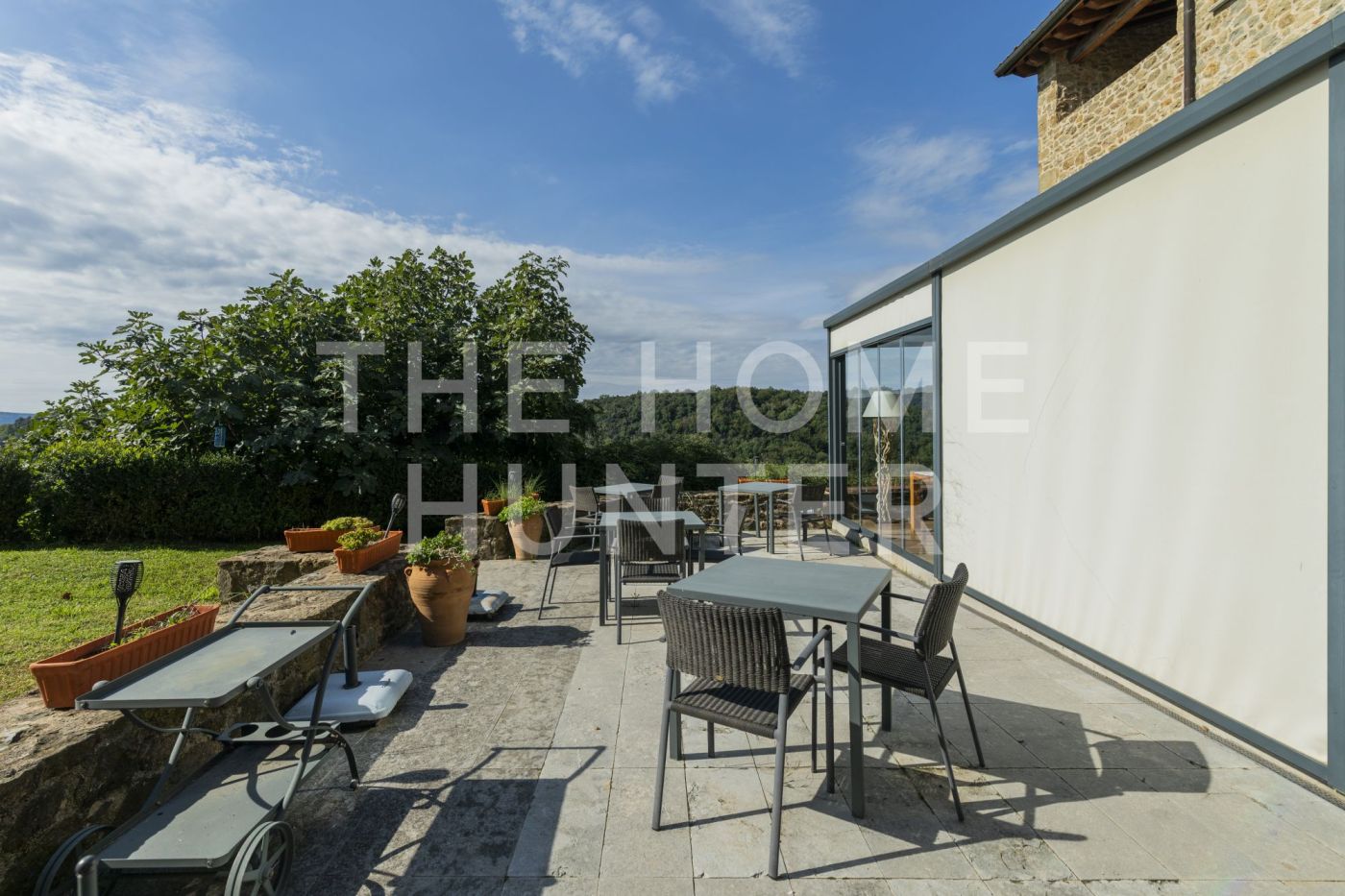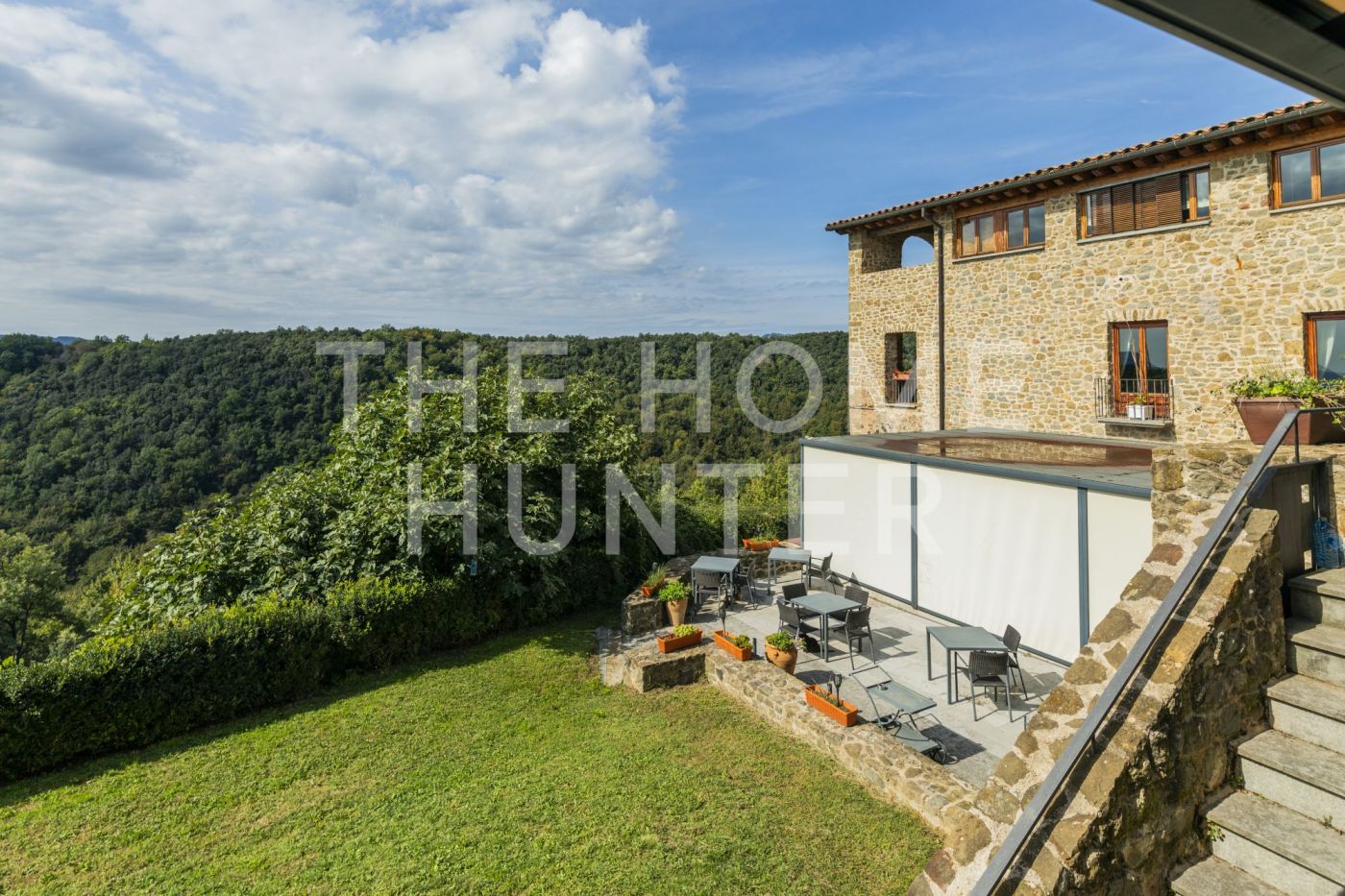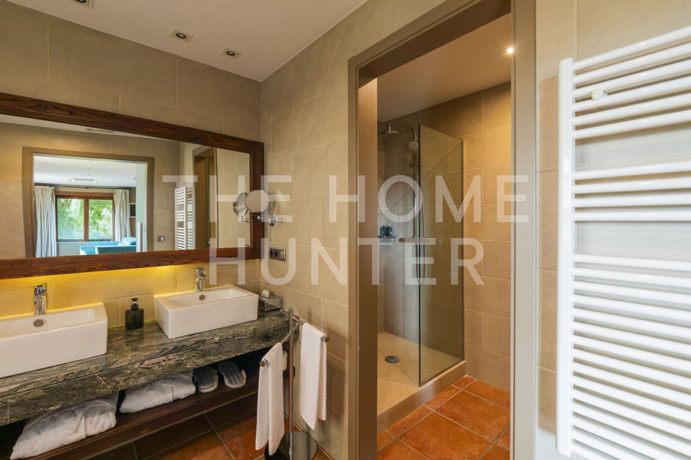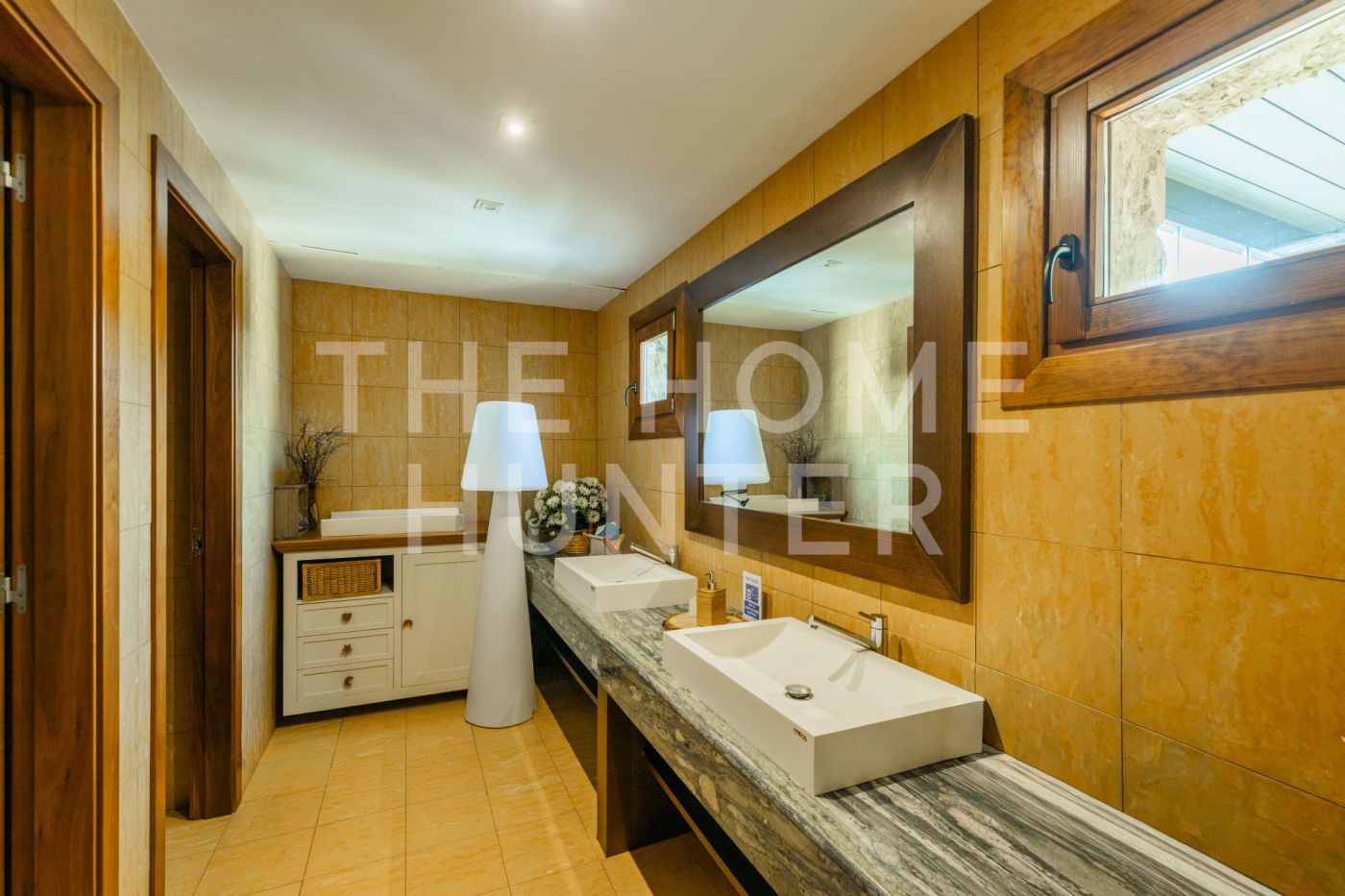 Esta masía, dividida en tres plantas con 2.400 m² construidos y 350.000 m² de superficie de parcela, dispone de 13 habitaciones y 16 baños. En la planta baja se encuentra la cocina, el comedor/restaurante, una súper bodega y un salón privado con unas vistas espectaculares. En la primera planta se puede admirar un precioso salón de piano junto a la recepción, dos suites con baños completos, además de los dos aseos que hay en la planta. También se encuentra un despacho, el cuarto de máquinas y siete habitaciones, todo esto, obviamente, con una amplia terraza donde disfrutarás de las vistas. Por último, en la segunda y última planta se encuentra otra sala de estar espaciosa junto con tres habitaciones y dos aseos más.